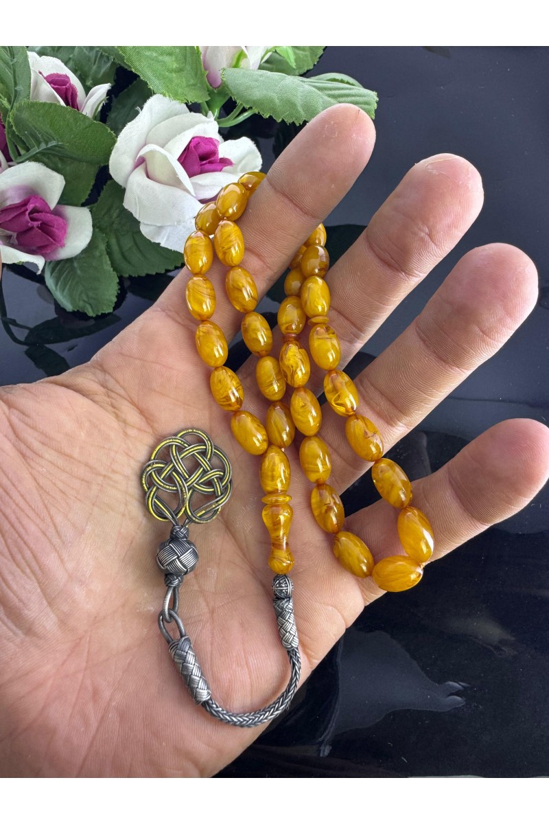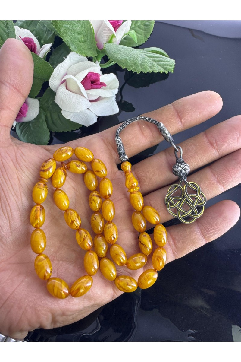1000 ayar trabzon kazaz gümüş püsküllü hareli sıkma kehribar - SG20231225