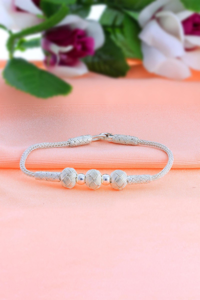 1000 Ayar Üç Top Örme El işi Kazaziye Gümüş Bileklik - SG20231112