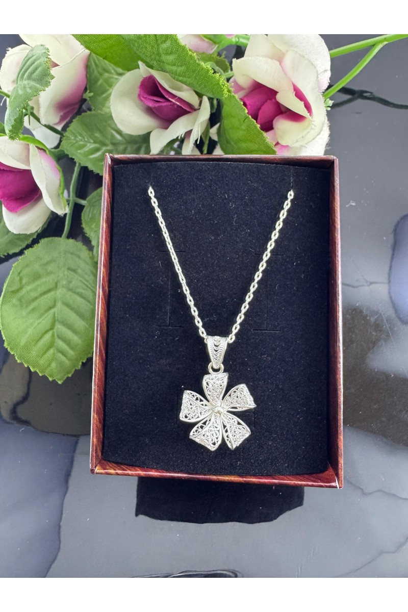 925 ayar 5yapraklı çiçek motifli telkari gümüş kolye - SG20231291