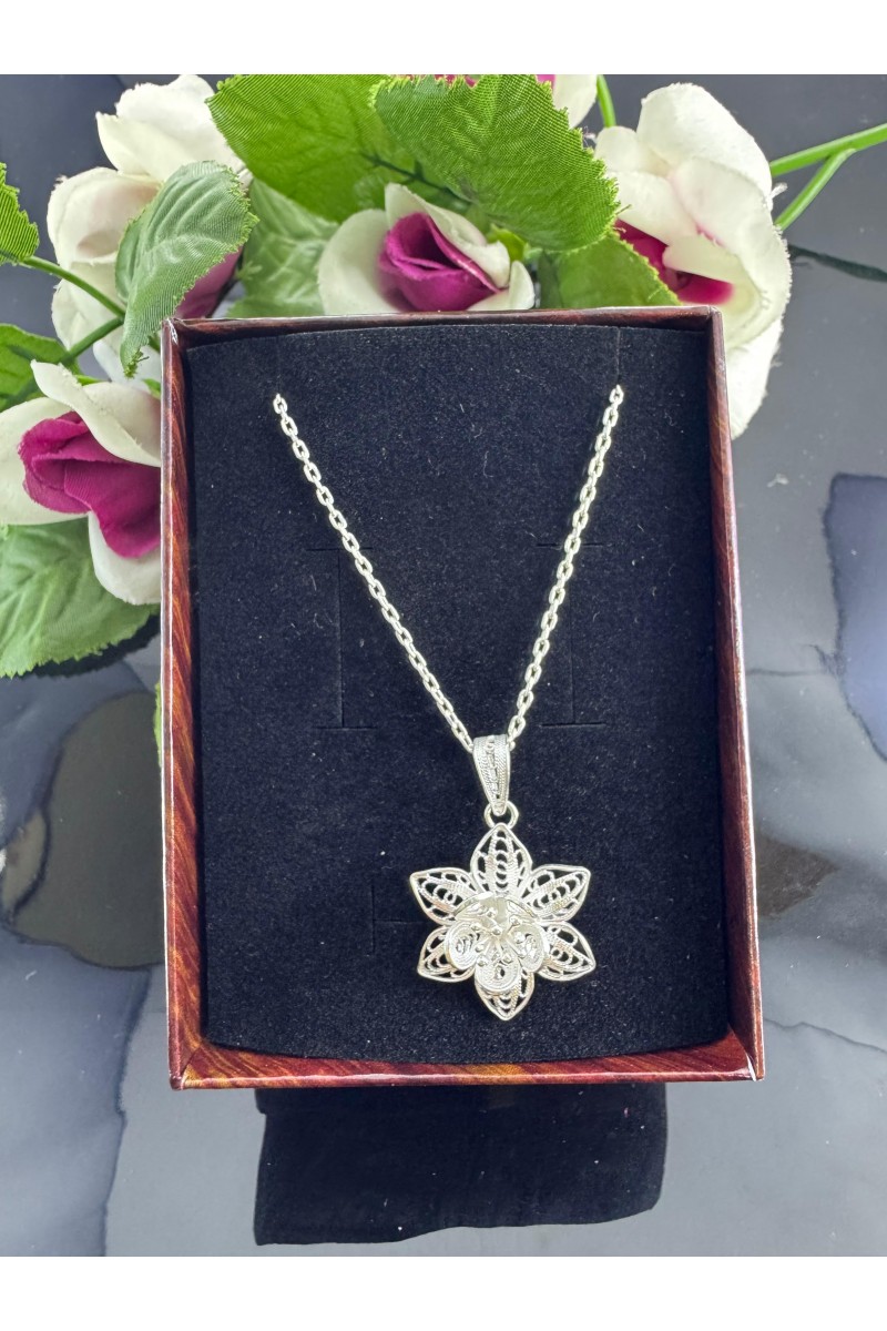 925 ayar 6 yapraklı bahar çiçeği motifli telkari gümüş kolye - SG20231293