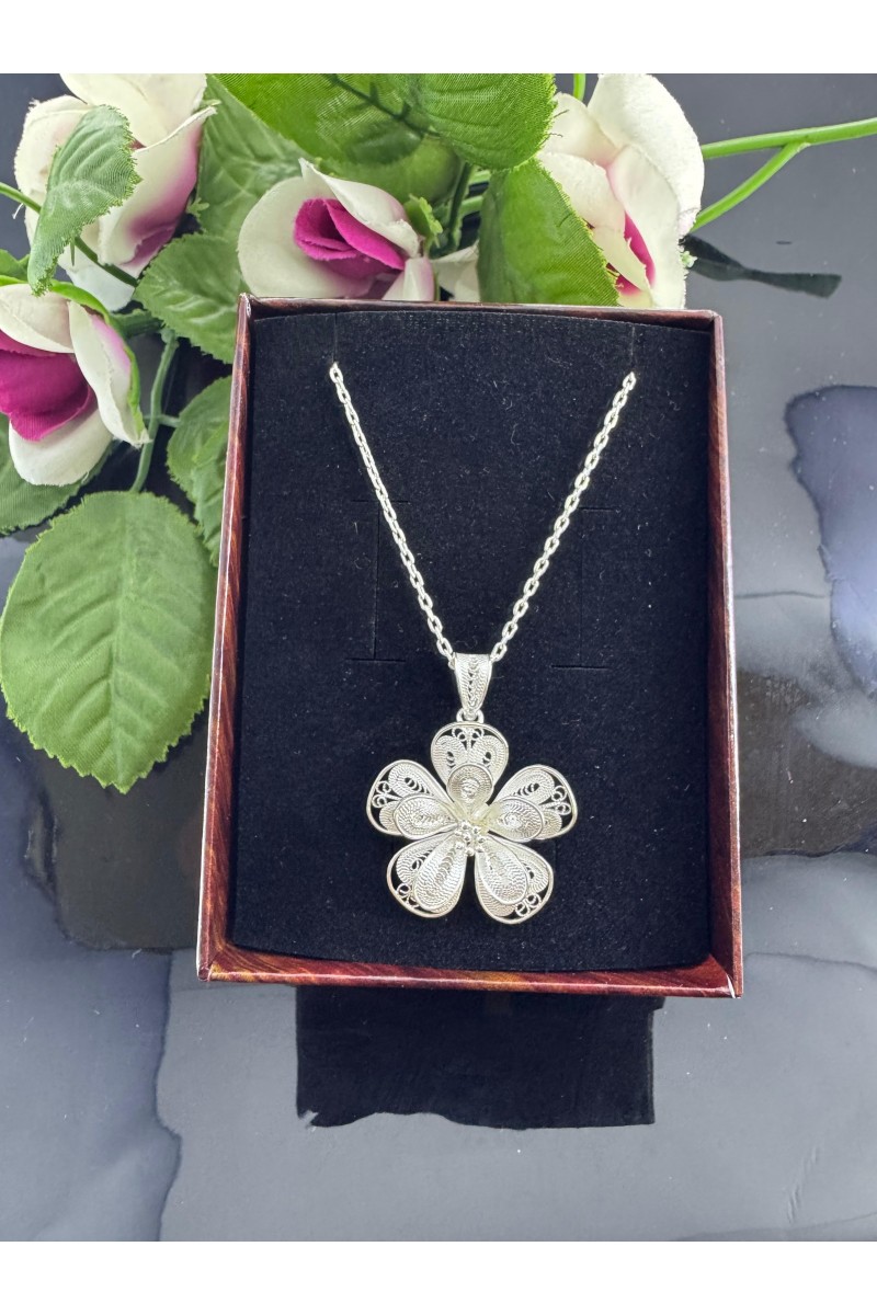 925 ayar çiçek desenli telkari gümüş kolye - SG20231284