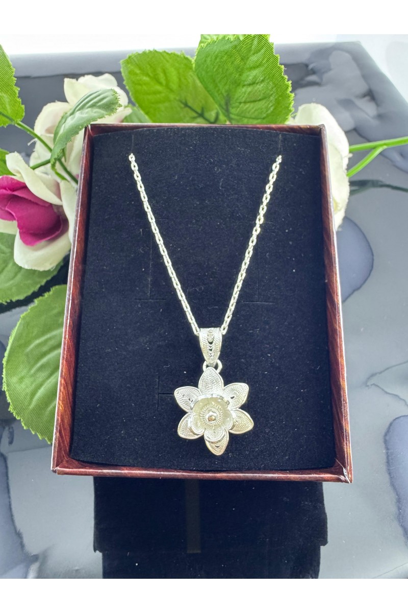 925 ayar çiçek içi dolu desenli telkari gümüş kolye - SG20231283