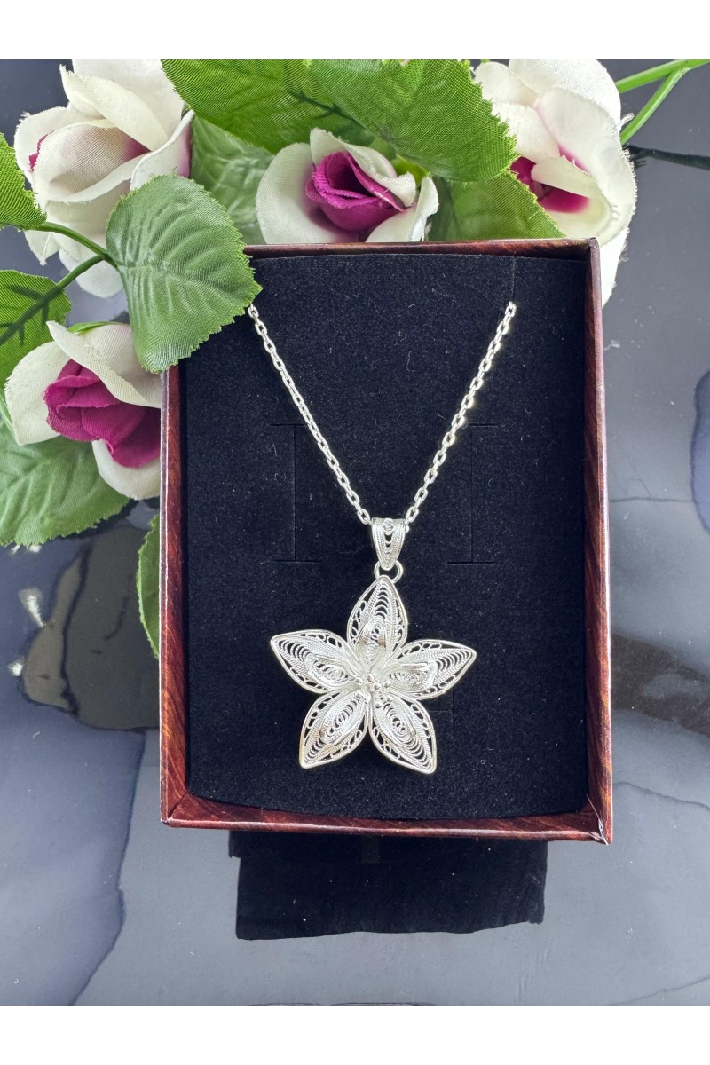 925 ayar deniz çiçeği motifli telkari gümüş kolye - SG20231299