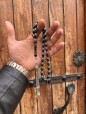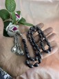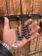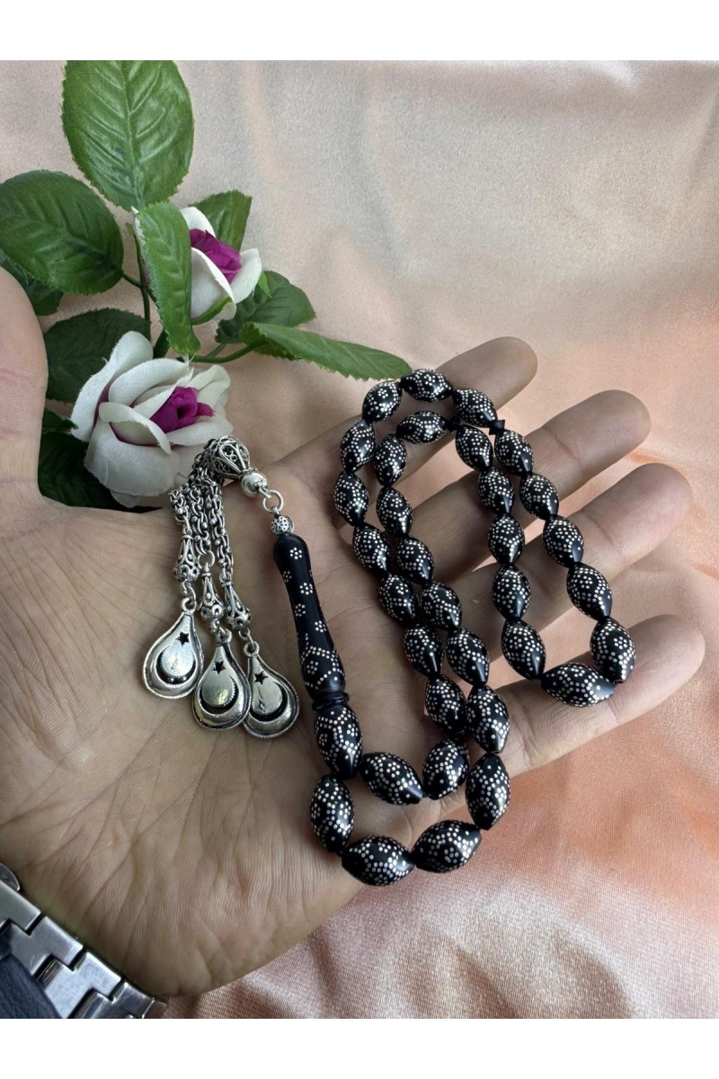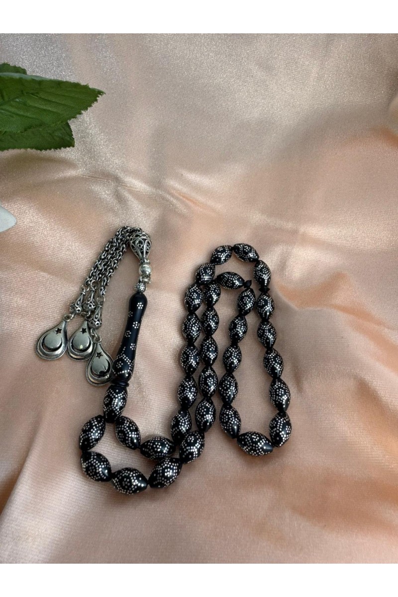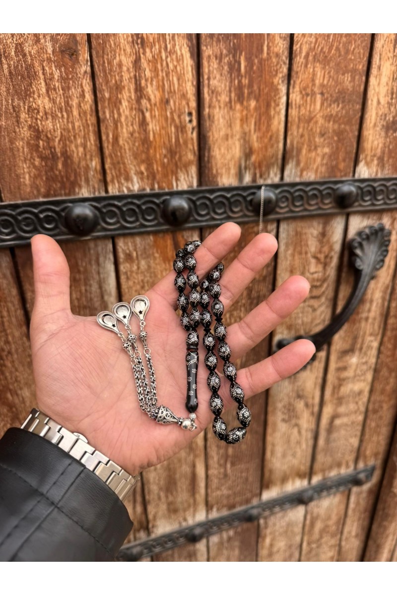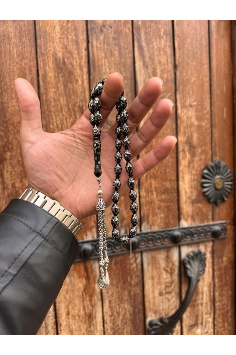 925 ayar Gümüş işlemeli ve gümüş püsküllü büyük ölçü siyah kuka tesbih - SG20231617