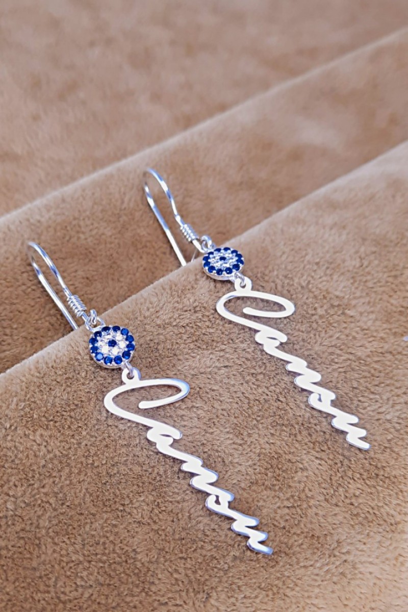 925 Ayar Gümüş Nazar Boncuklu Isim Küpe Zirkon Taşlı - SG20230490