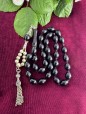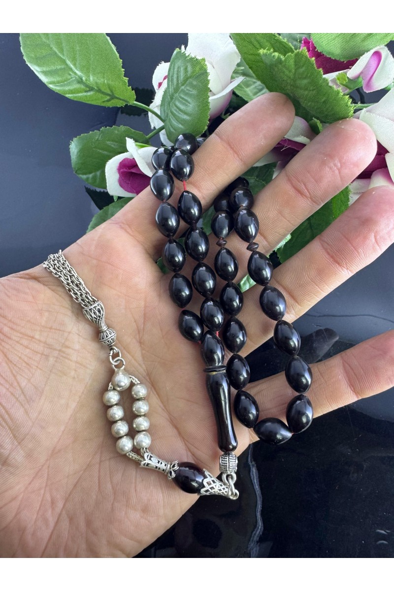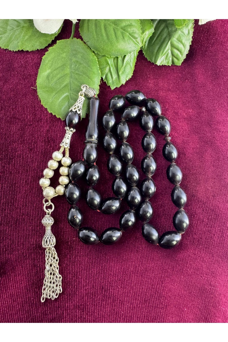 925 ayar gümüş püsküllü badem kesim dışı siyah içi kahverengi sıkma kehribar - SG20231260