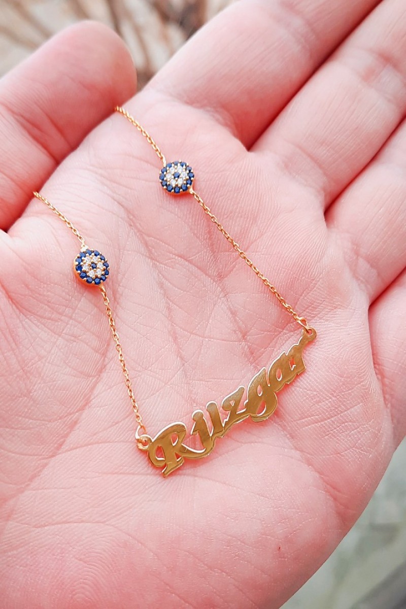 925 Ayar Gümüş Üzeri Kaplama Nazar Boncuklu Isim Kolye - SG20230498