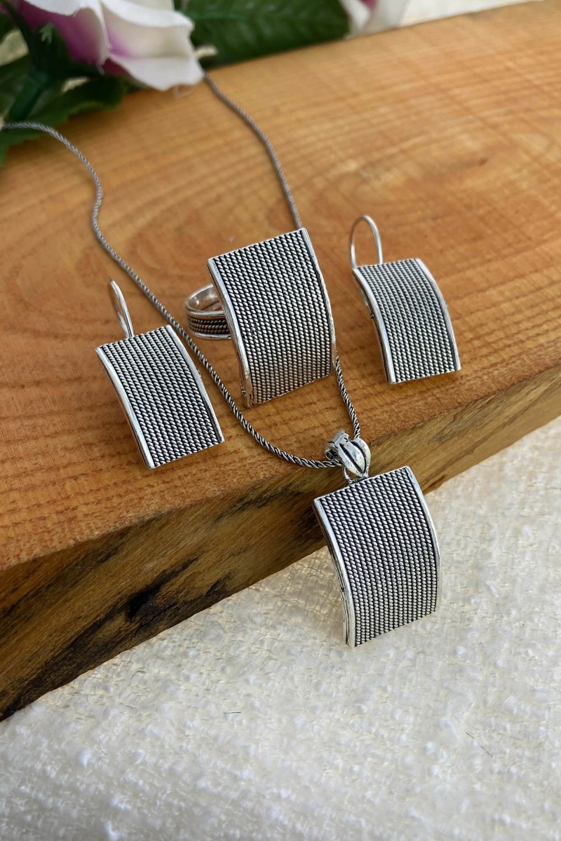 925 AYAR MİDYAT TELKARİ OKSİTLİ KÜPE KOLYE YÜZÜK SET - SG20230838