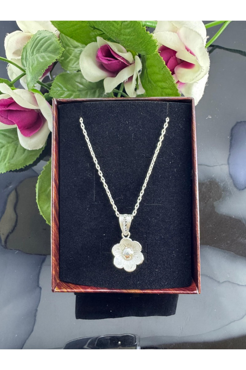 925 ayar minik papatya motifli telkari gümüş kolye - SG20231295