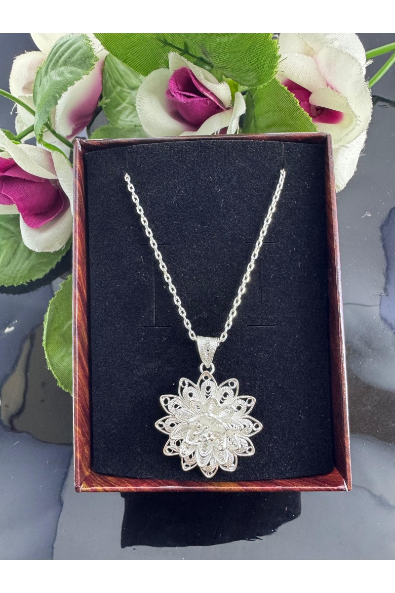 925 ayar nilüfer desenli telkari gümüş kolye - SG20231285