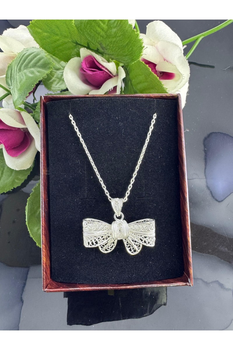 925 ayar papyon motifli telkari gümüş kolye - SG20231298