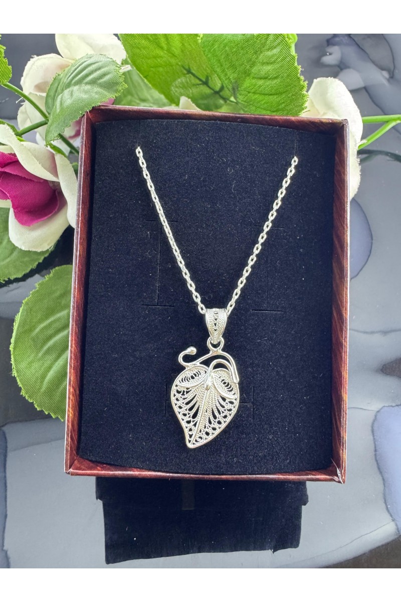 925 ayar sarmaşık kalp desenli telkari gümüş kolye - SG20231281