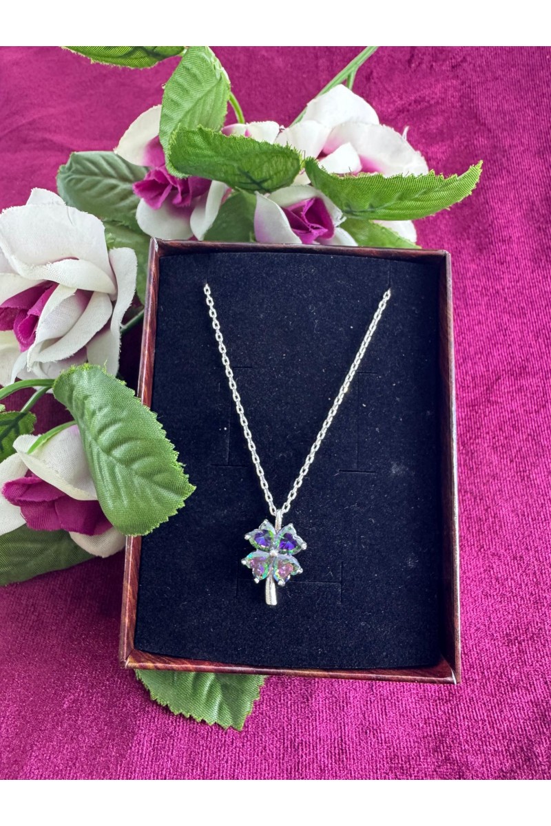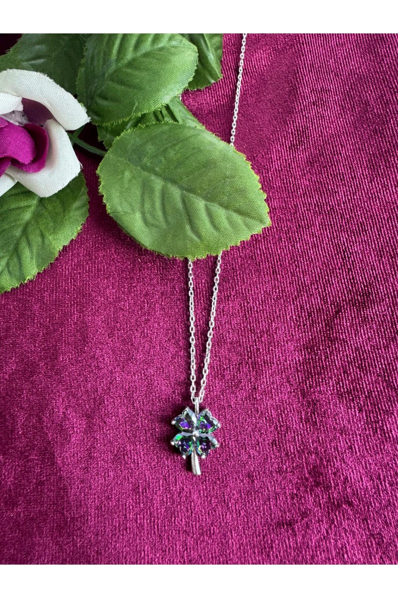 925 ayar yonca desenli çok renkli hayalet gümüş kolye - SG20231310