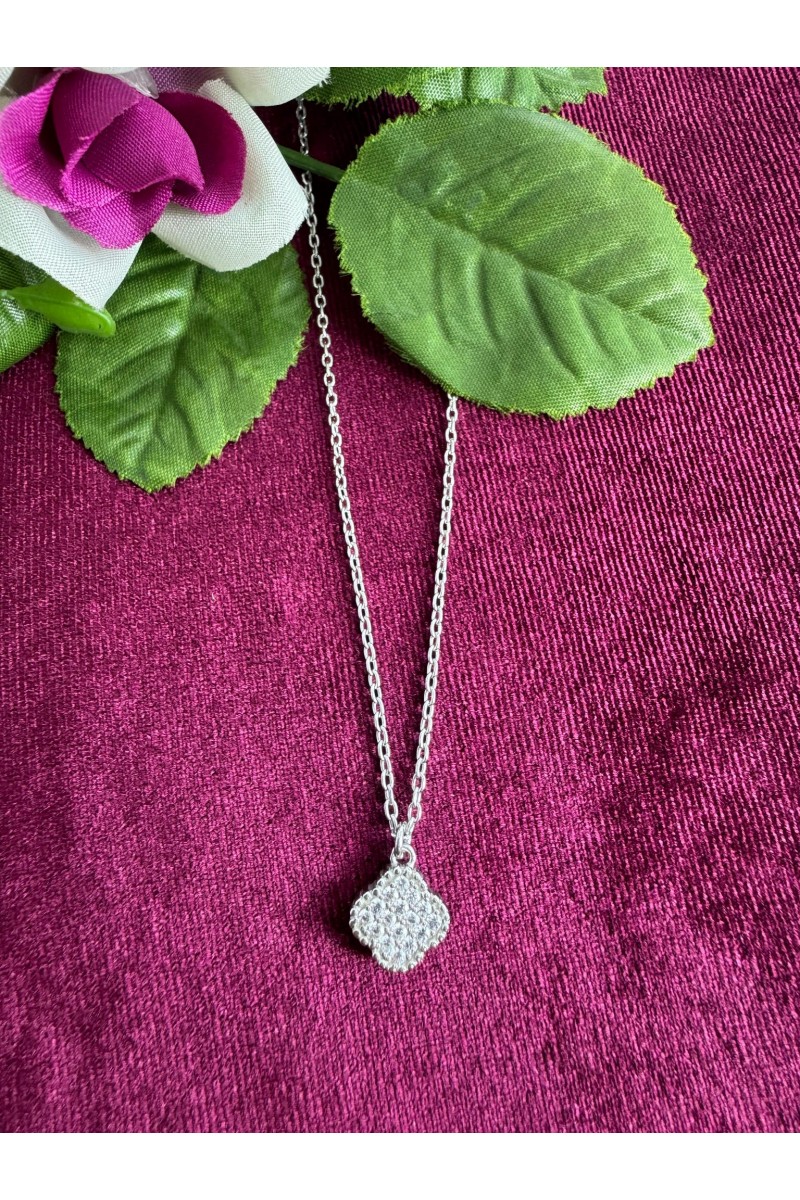 925 ayar yonca desenli zirkon taşlı hayalet gümüş kolye - SG20231315