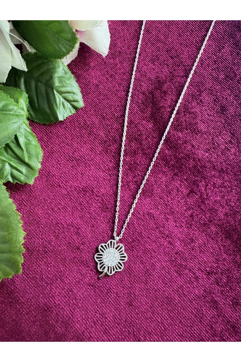 925 ayar yonca desenli zirkon taşlı hayalet gümüş kolye - SG202313236
