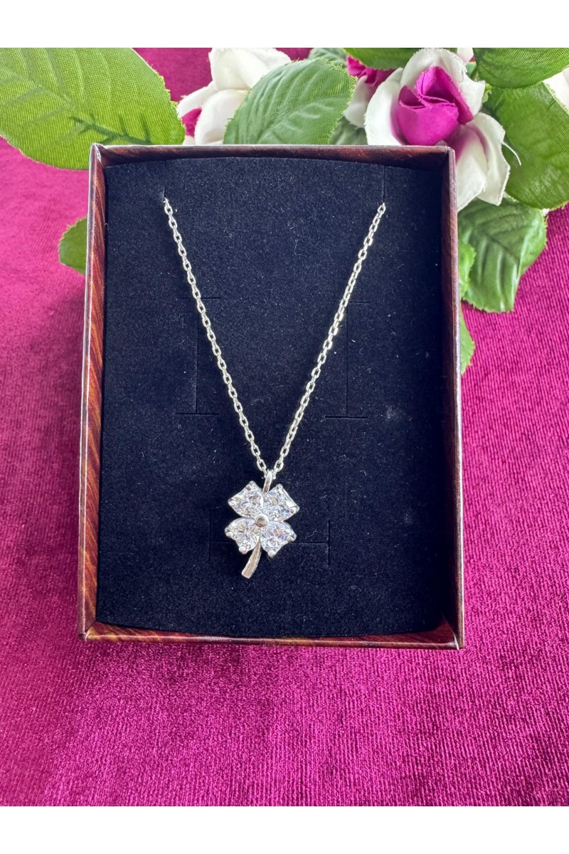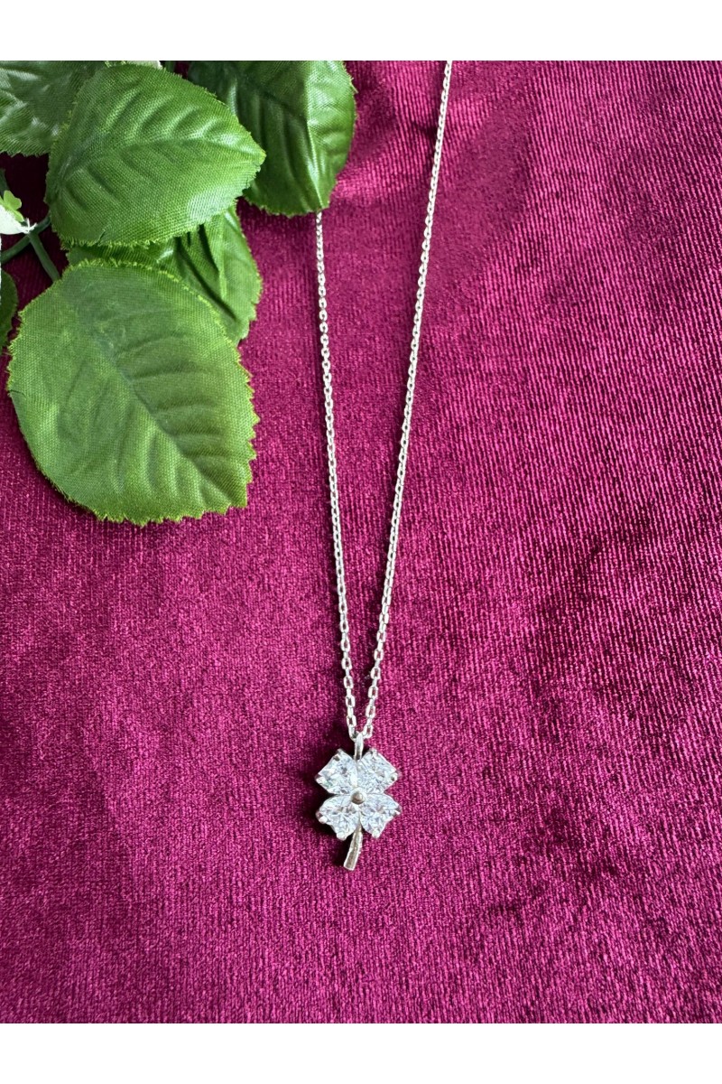 925 ayar yonca desenli zürkon taşlı hayalet gümüş kolye - SG20231312