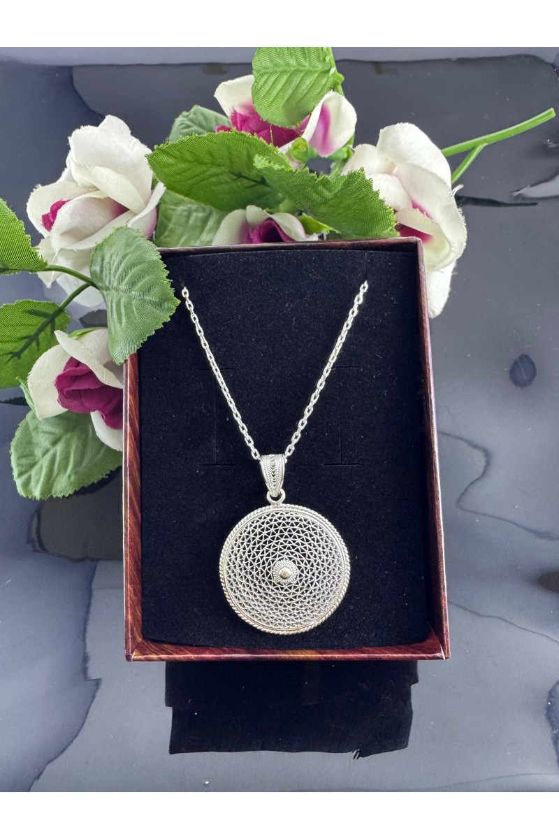 925 ayar yuvarlak motifli telkari gümüş kolye - SG20231304