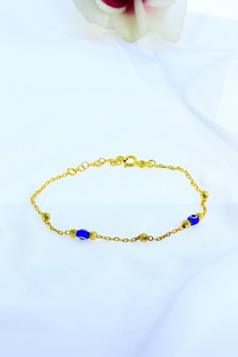 Altın Kaplama Nazar Boncuğu Gümüş Bileklik - SG20231156