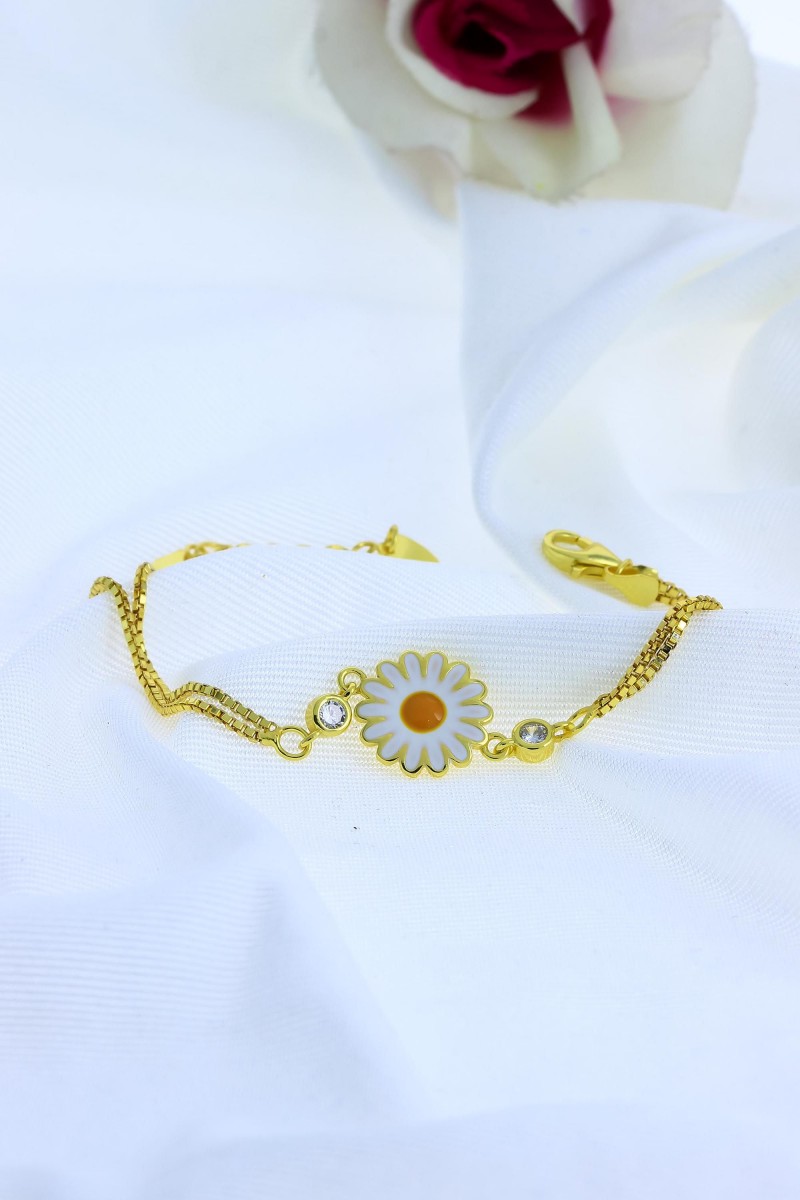 Altın Kaplama Papatya Model Gümüş Bileklik - SG20231146