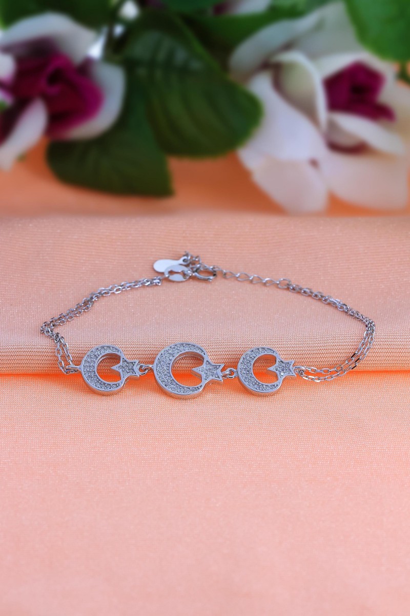 Ay Yıldızlı Model Zirkon Taşlı Gümüş Bileklik - SG20231164