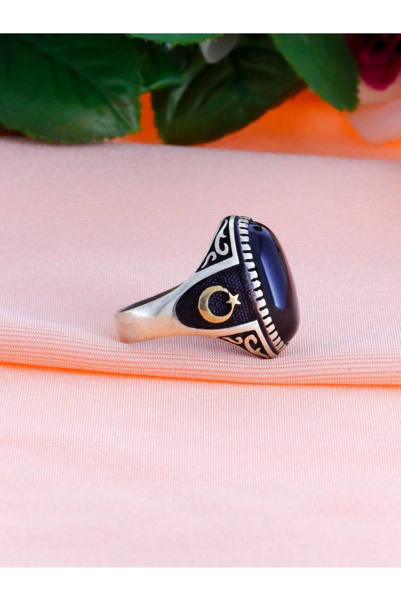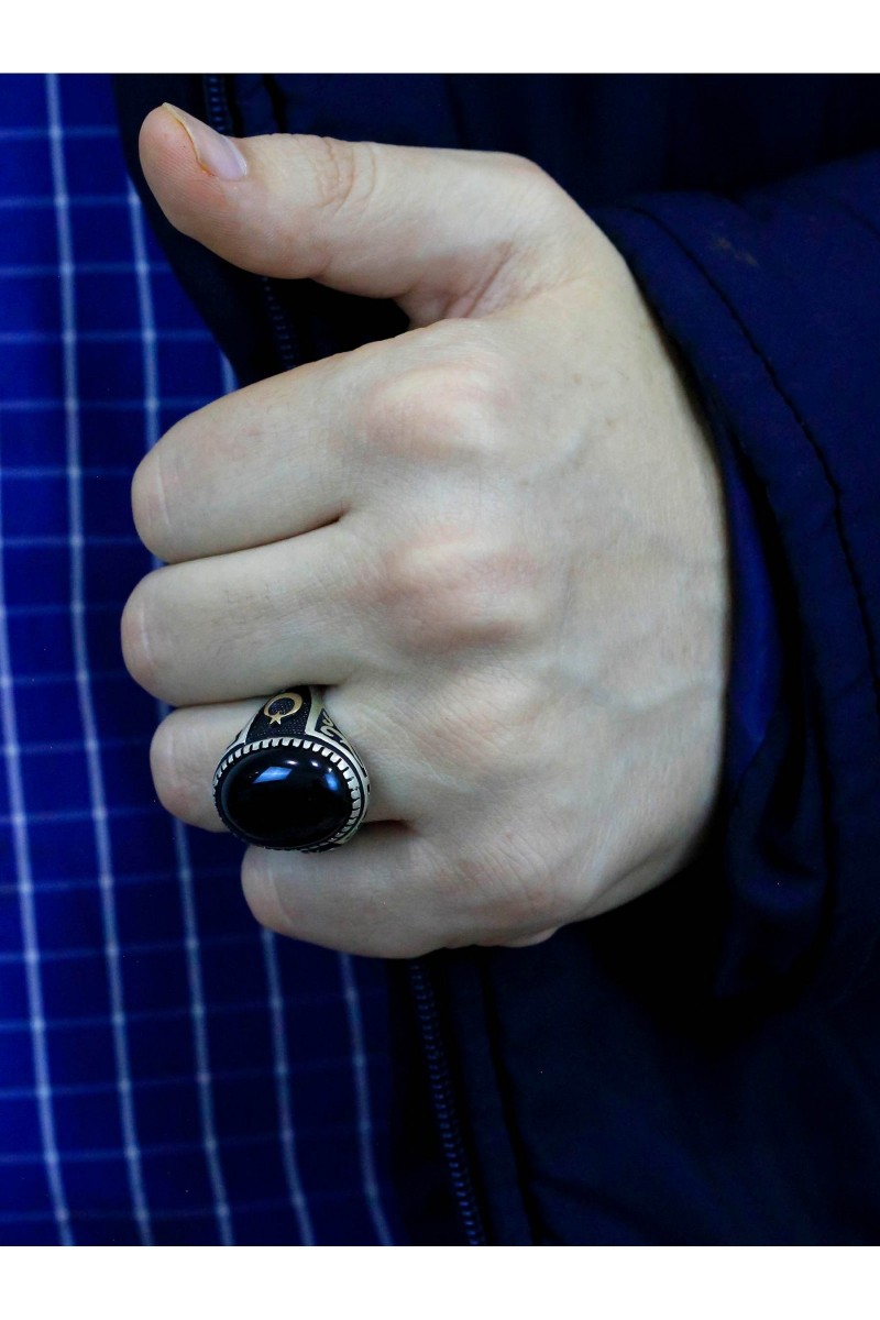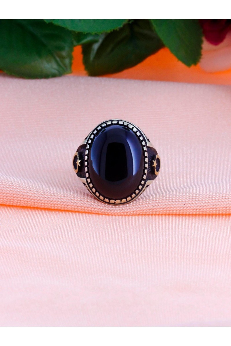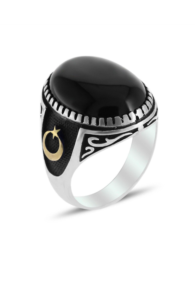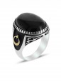 Ayyıldız İşleme Oniks Taşlı Erkek Gümüş Yüzük - SG20230796