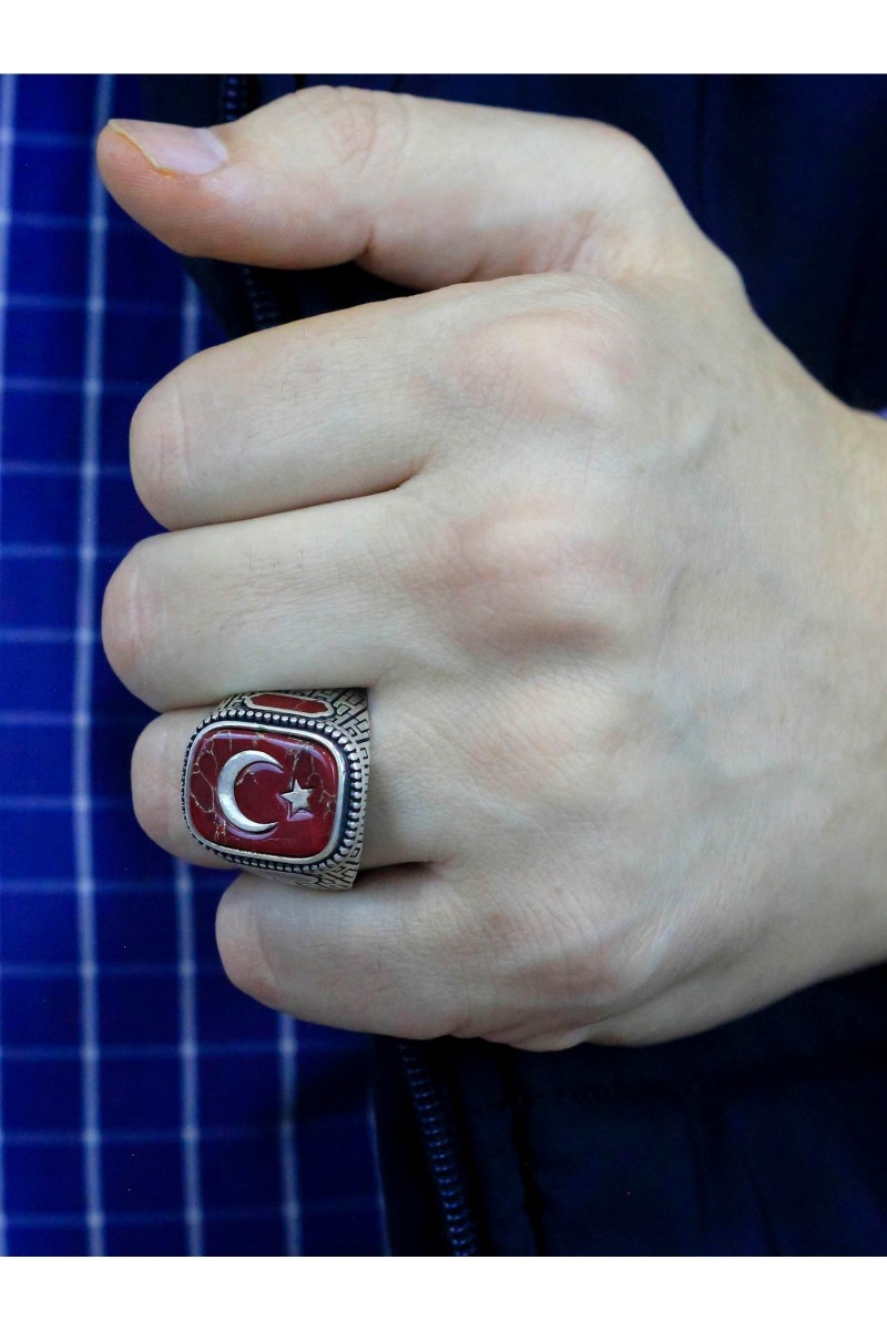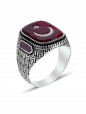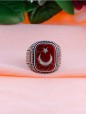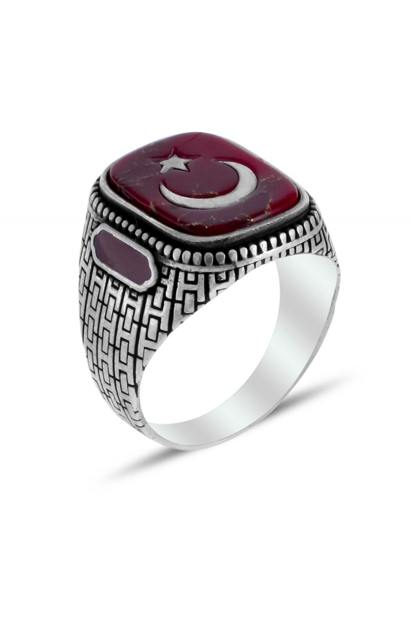 Ayyıldız İşlemeli Akik Taşlı Erkek Gümüş Yüzük - SG20230799