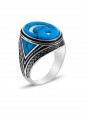 Ayyıldız İşlemeli Firuze Taşlı 925 Ayar Erkek Gümüş Yüzük - SG20230776