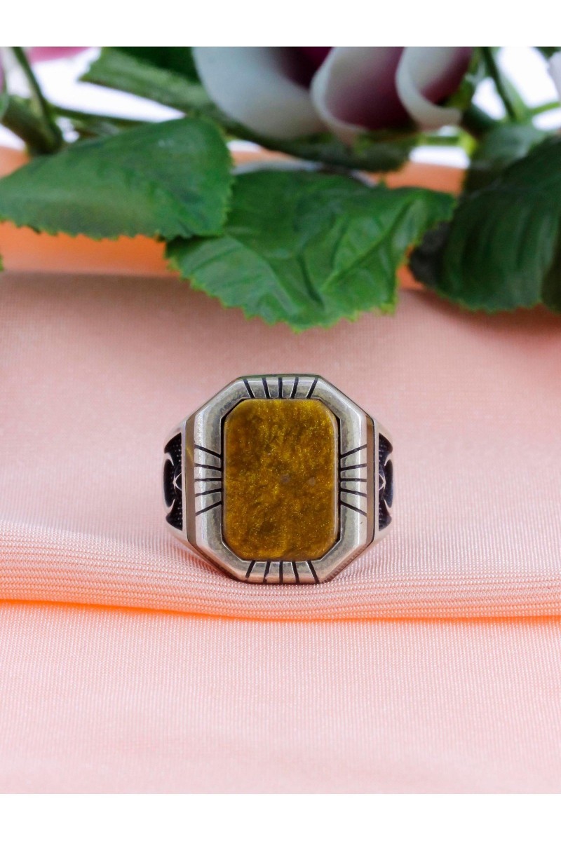 Ayyıldız İşlemeli Kaplangözü Taşlı Erkek Gümüş Yüzük - SG20230781
