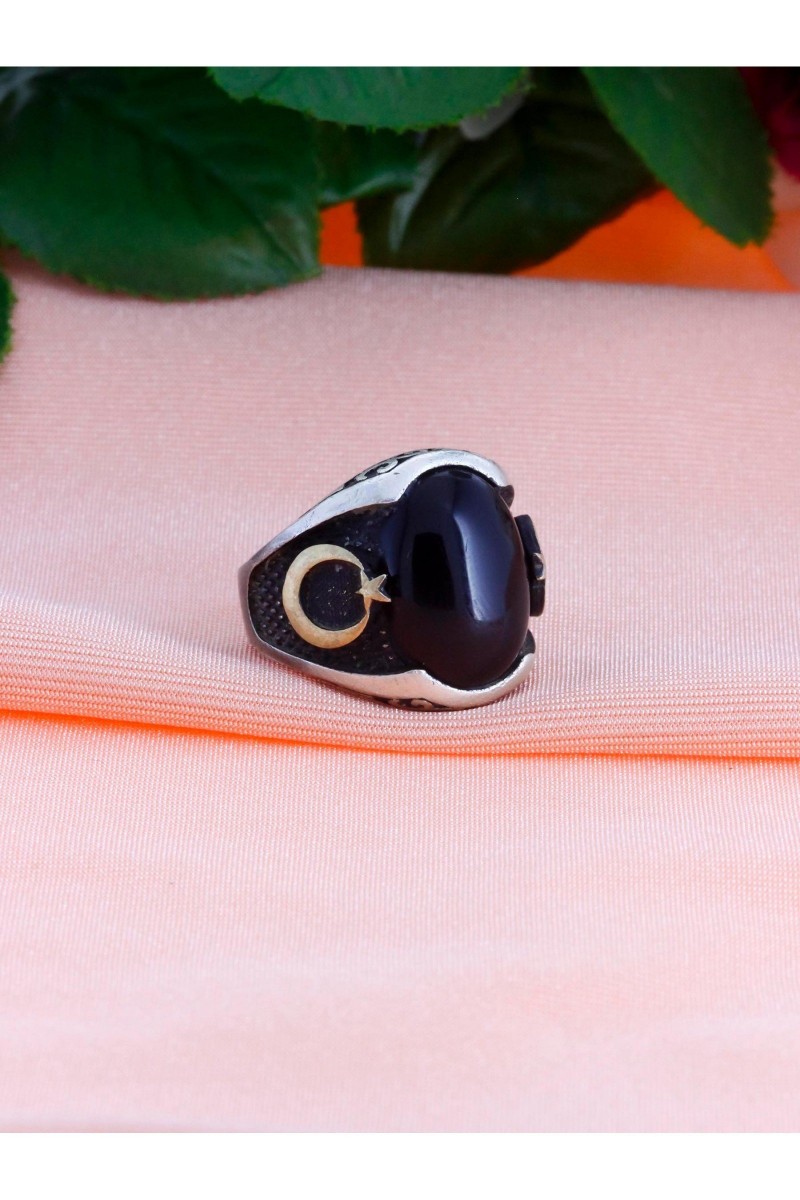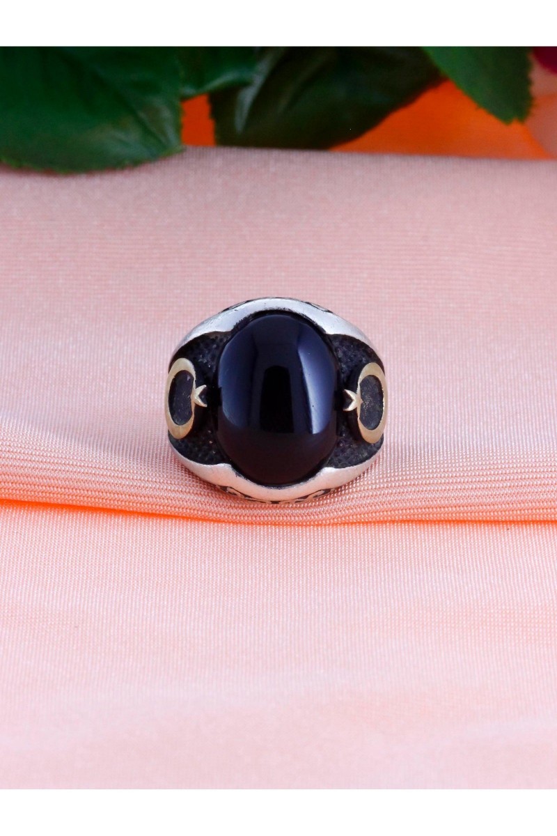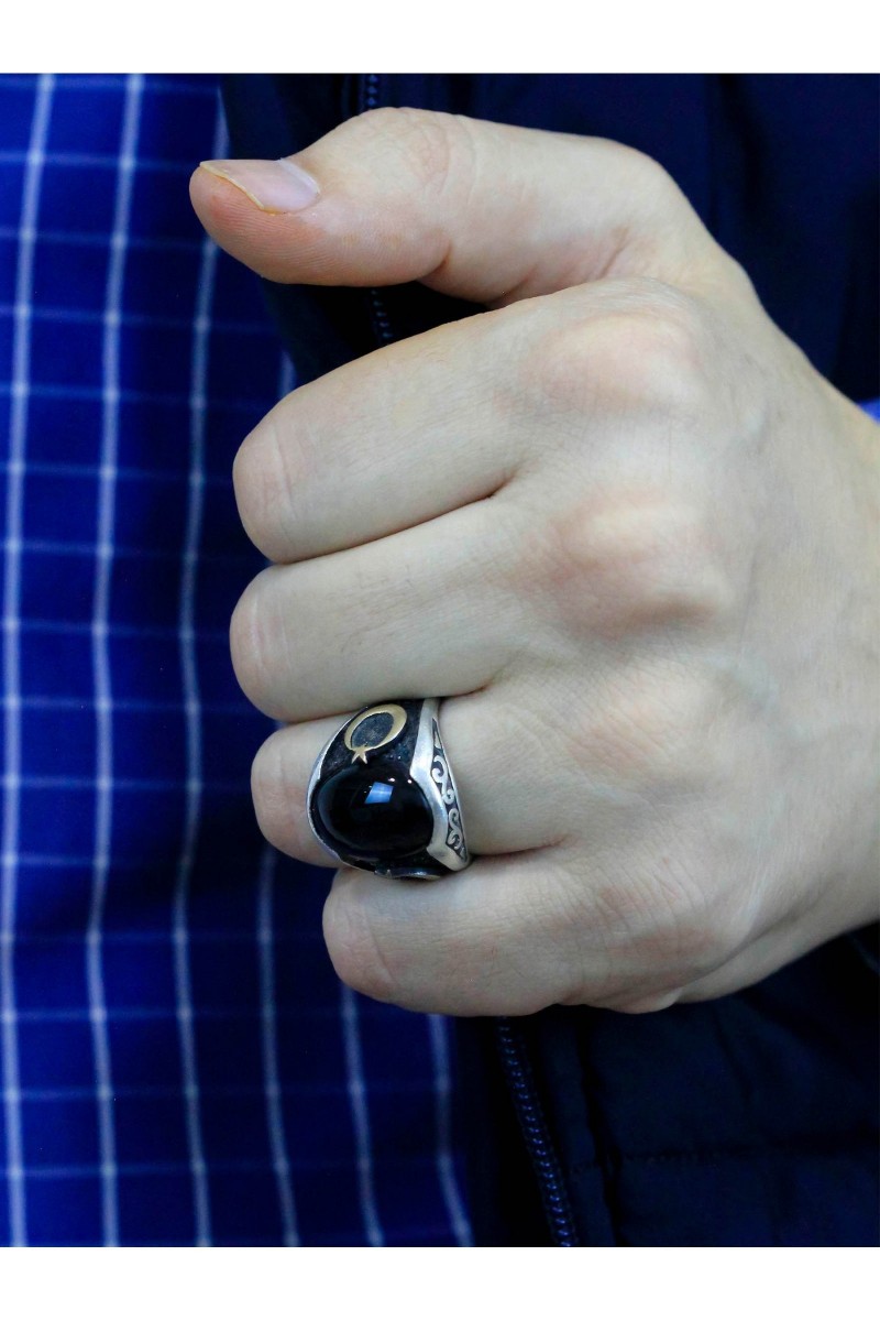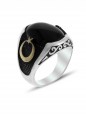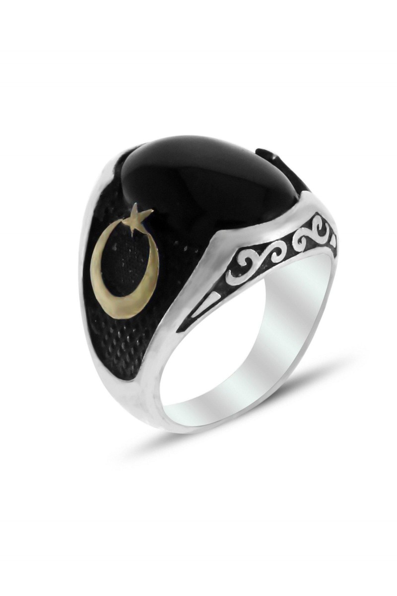 Ayyıldız İşlemeli Oniks Taşlı Erkek Gümüş Yüzük - SG20230800