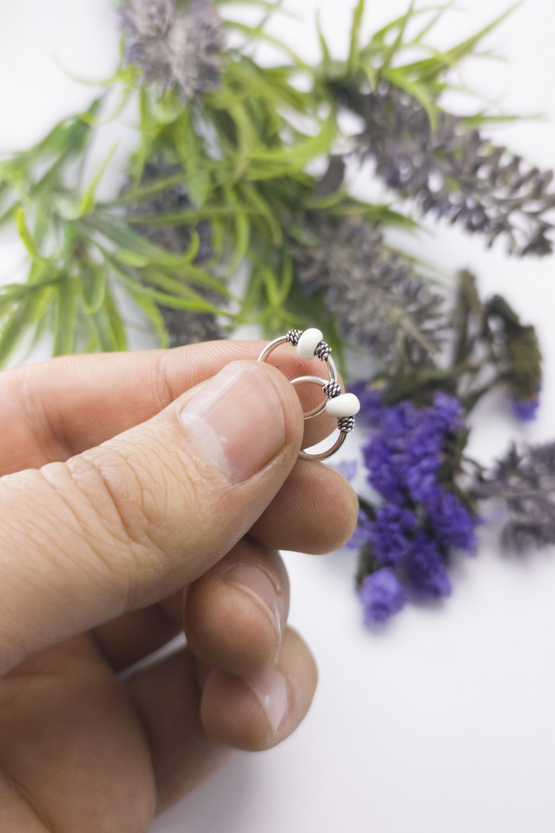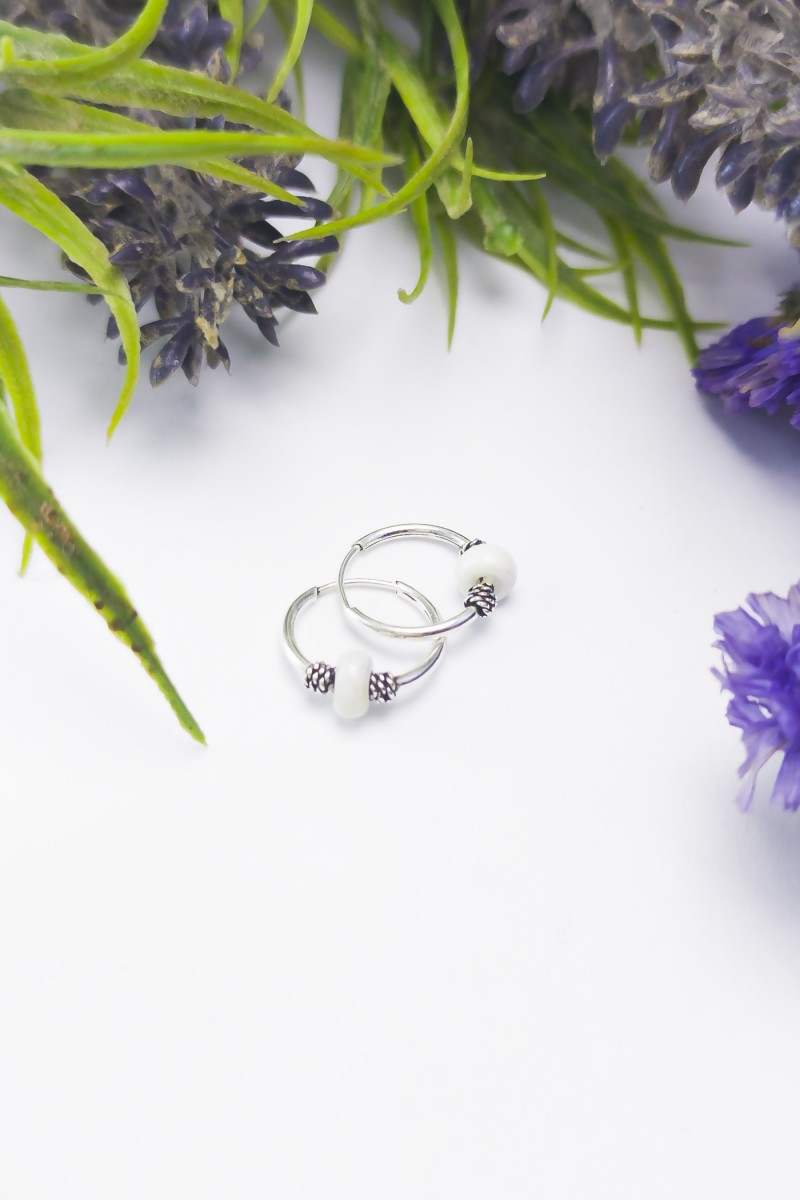 Beyaz Taşlı Gümüş Halka Küpe - SG20230308