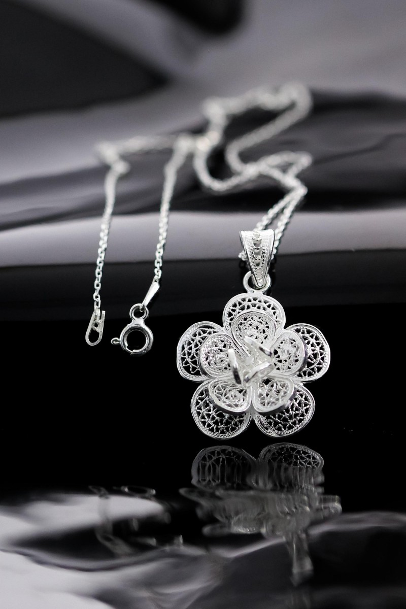 Çiçek Model 925 Ayar Telkari Gümüş Kolye Ucu - SG20230887