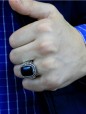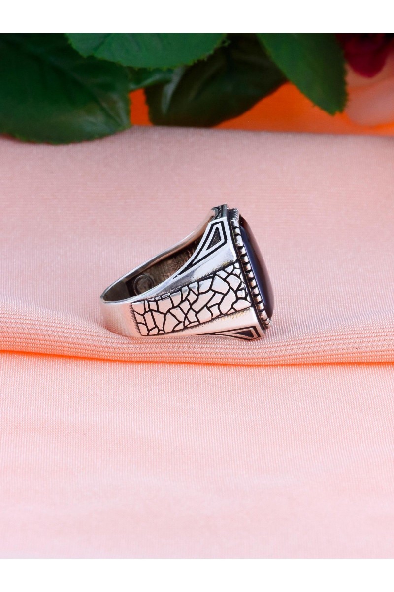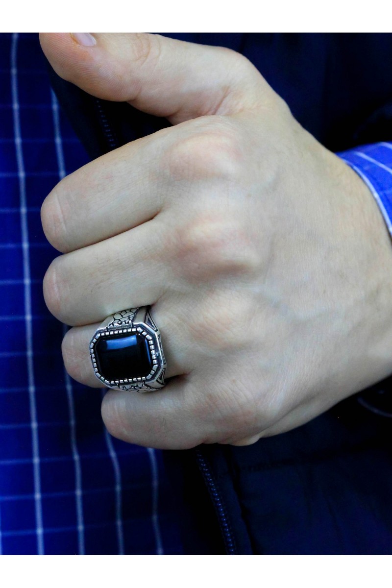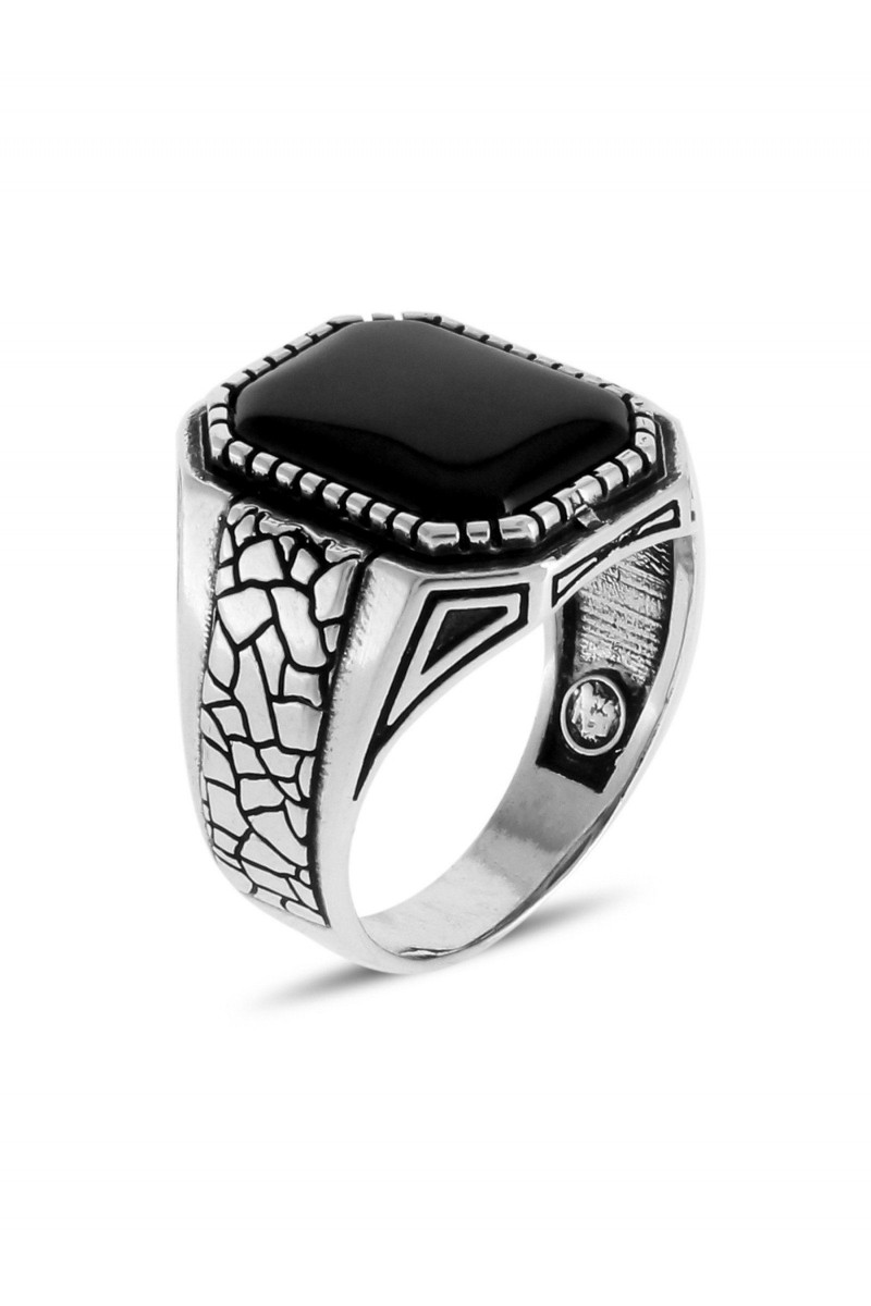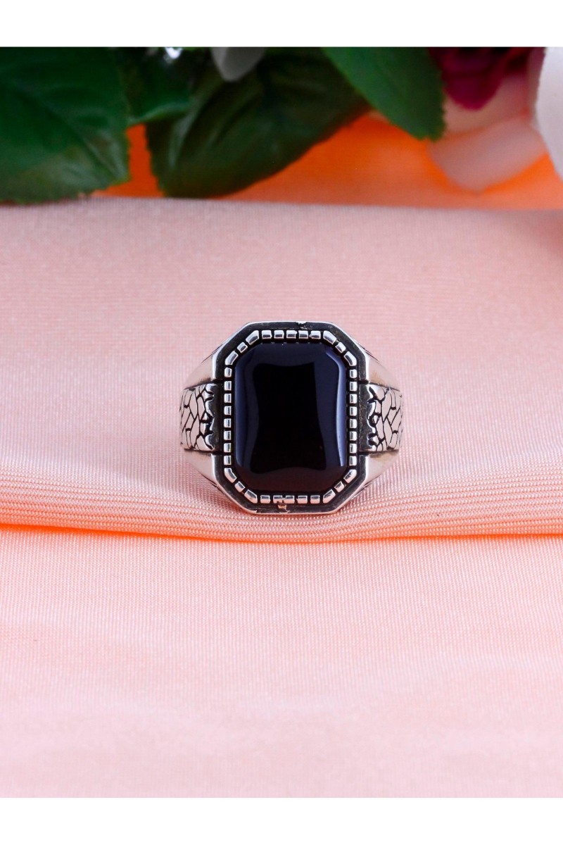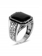 Çöl Çatlağı İşlemeli Oniks Taşlı Erkek Gümüş Yüzük - SG20230805