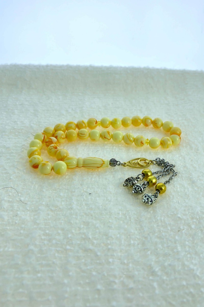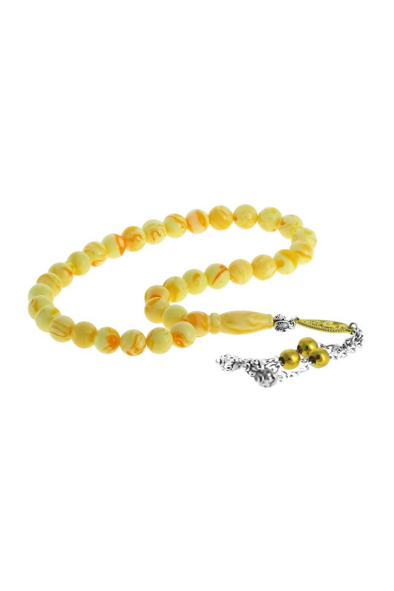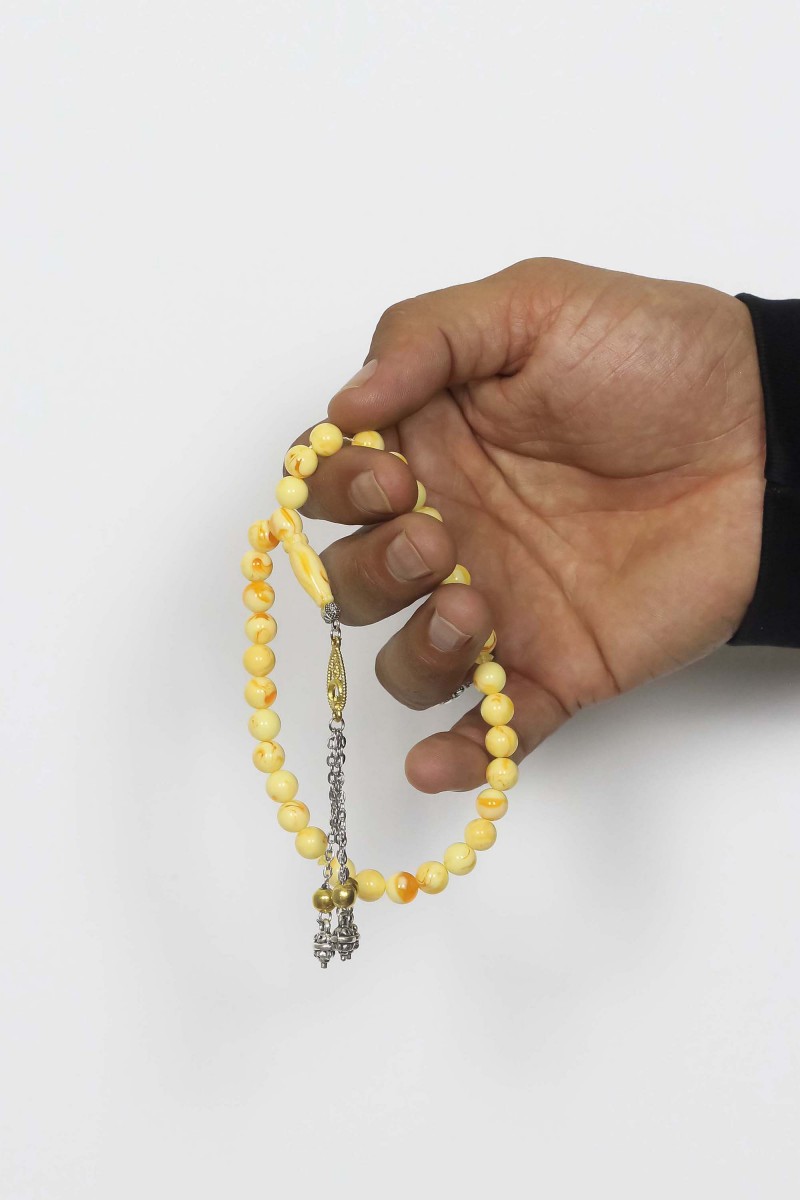 DAMARLI SARI KÜRE KESİM TOZ KEHRİBAR TESBİH - SG20230877