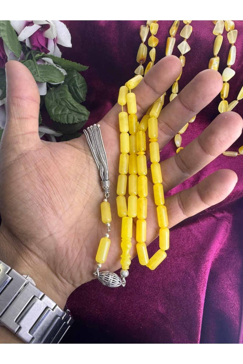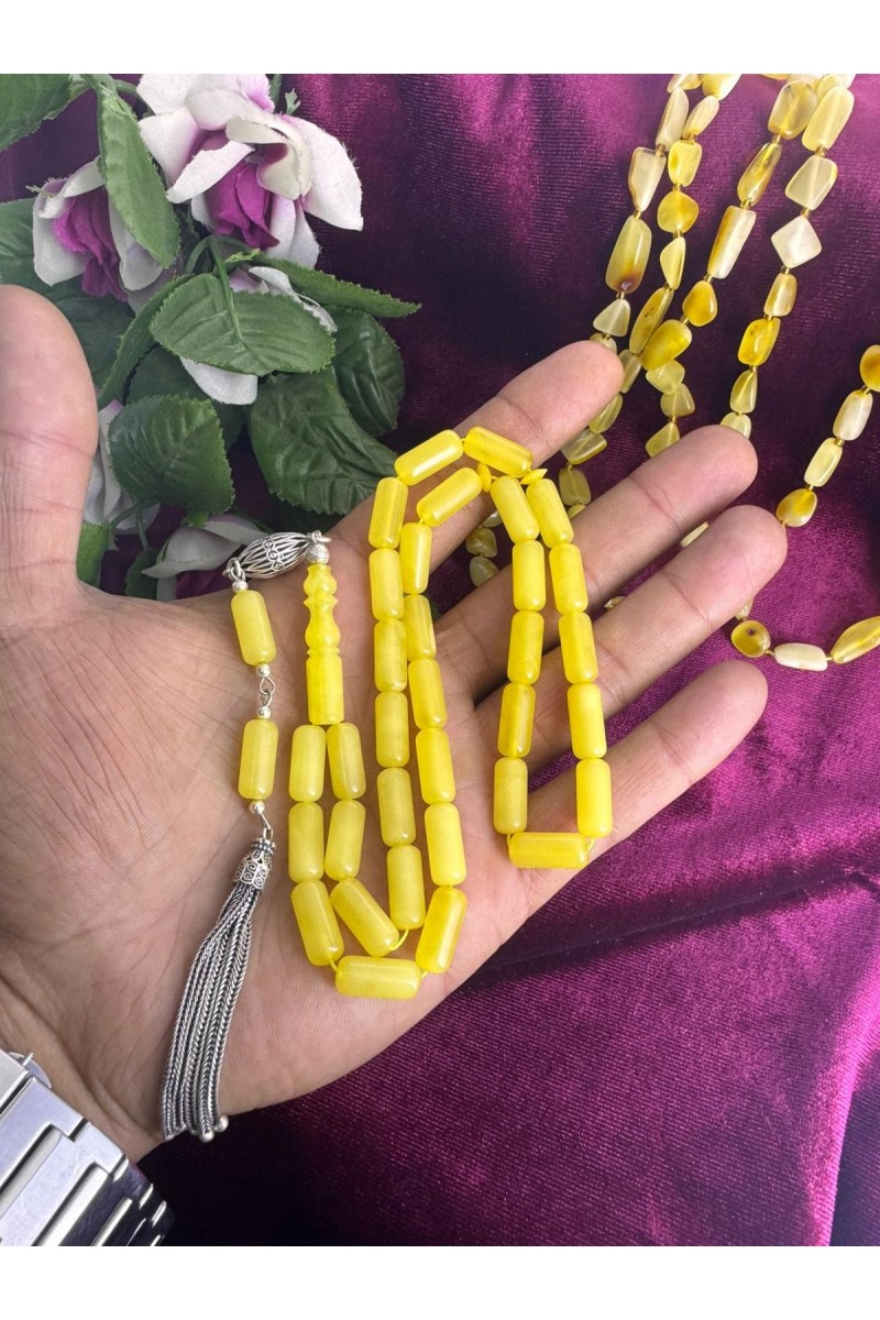 Damla Kehribar 925 ayar gümüş püsküllü temiz işçilikli fosilsiz tesbih - SG20231634