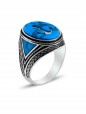 Denici Çapası İşlemeli Firuze Taşlı Erkek Gümüş Yüzük - SG20230777