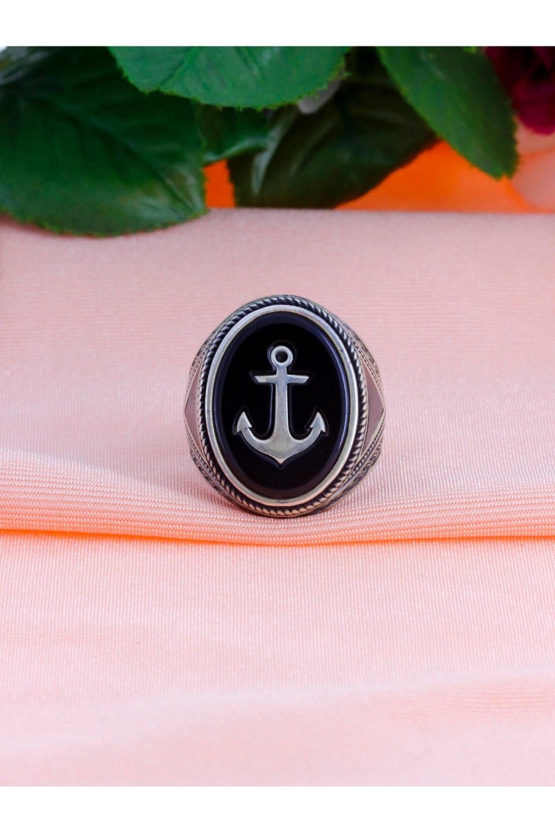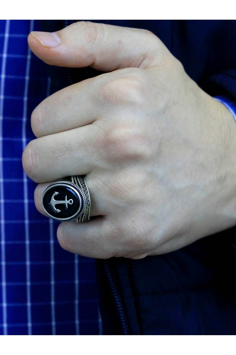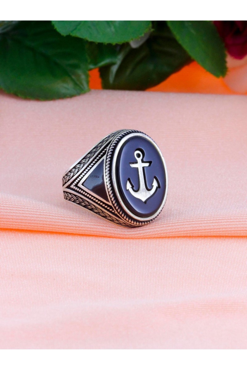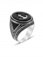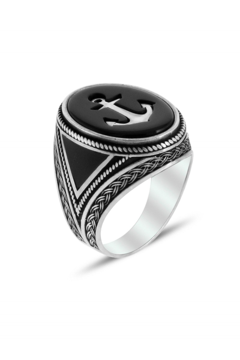 Denici Çapası İşlemeli Oniks Taşlı Erkek Gümüş Yüzük - SG20230778