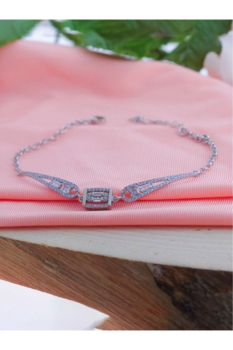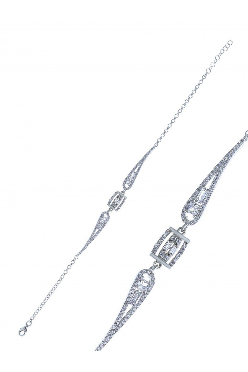 Dikdörtgen Model Baget Zirkon Taşlı Gümüş Bileklik - SG20230671