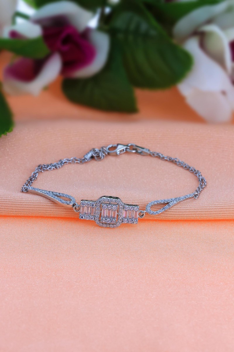 Dikdörtgen Model Baget Zirkon Taşlı Gümüş Bileklik - SG20231166