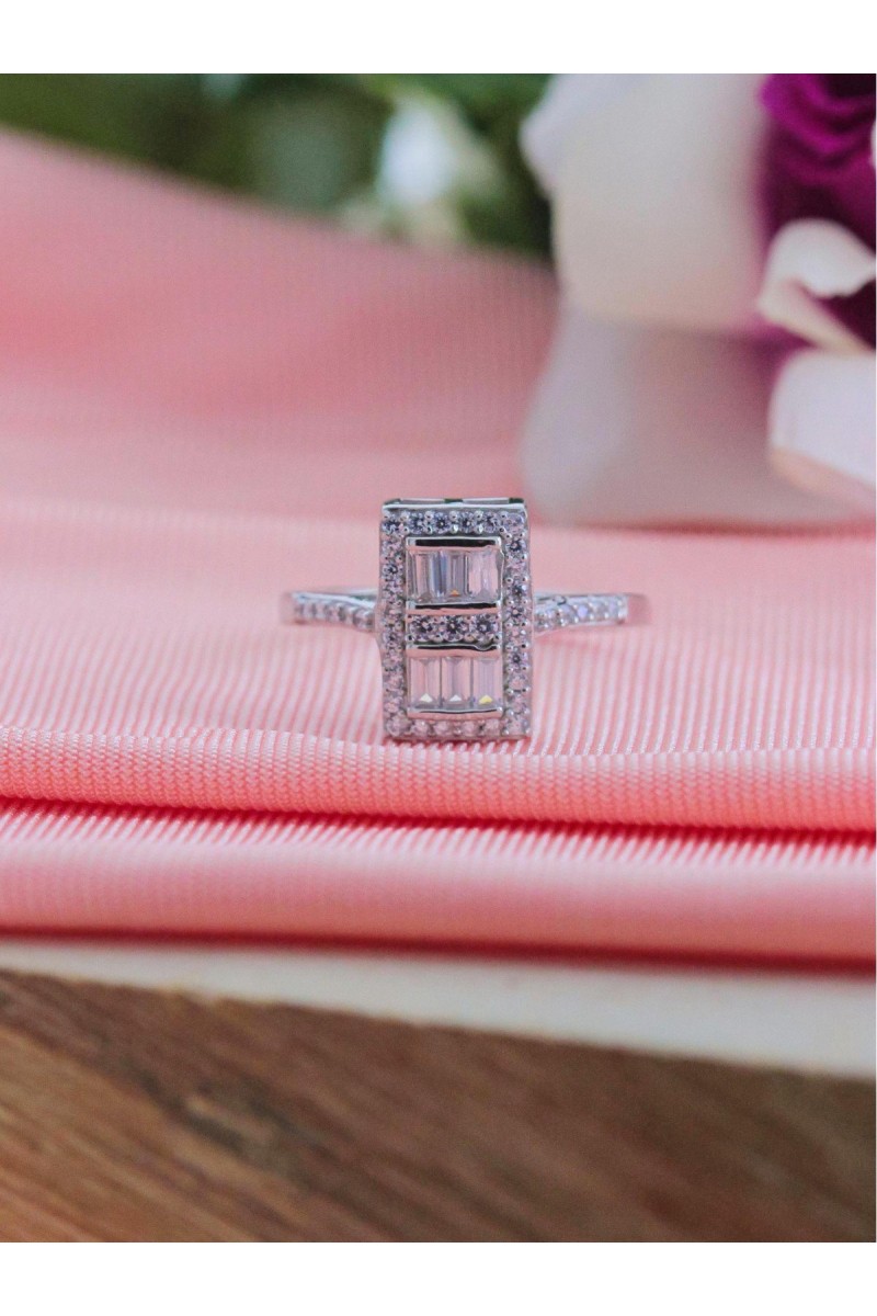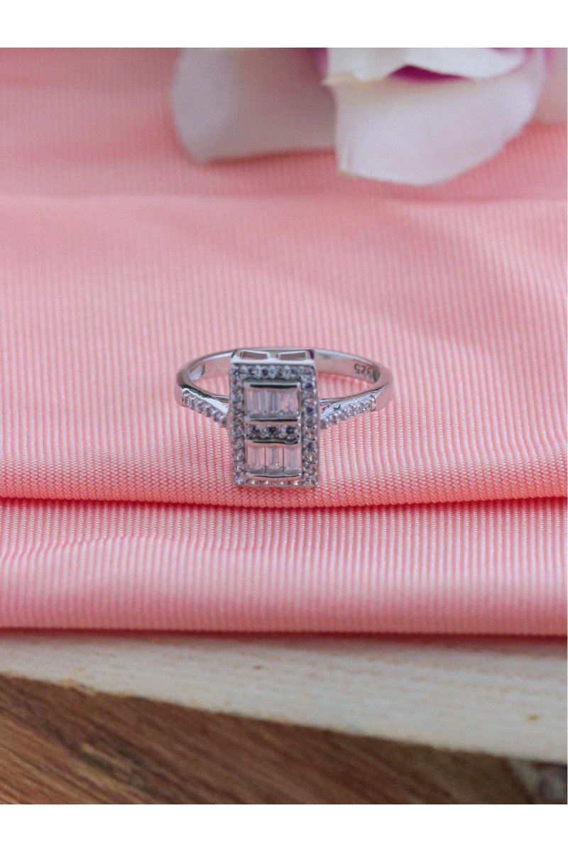 Dikdörtgen Model Baget Zirkon Taşlı Gümüş Yüzük - SG20230675