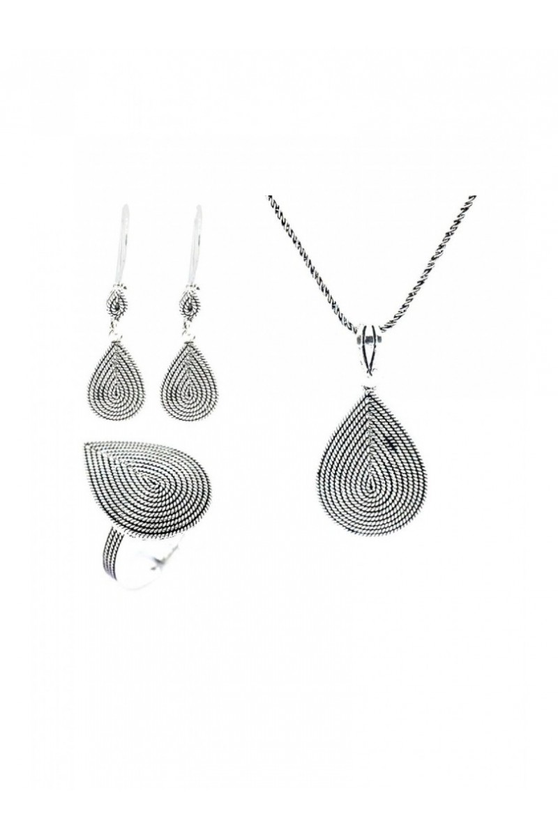 El Işi Damla Motifli Telkari Üçlü Set - SG20230536
