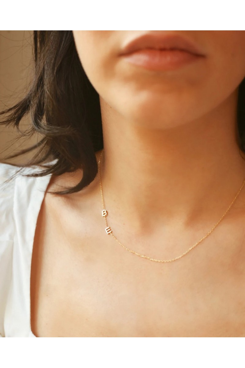 Extra Zarif iki Harfli Altın Kaplama İsimli Gümüş Kolye - SG20230375