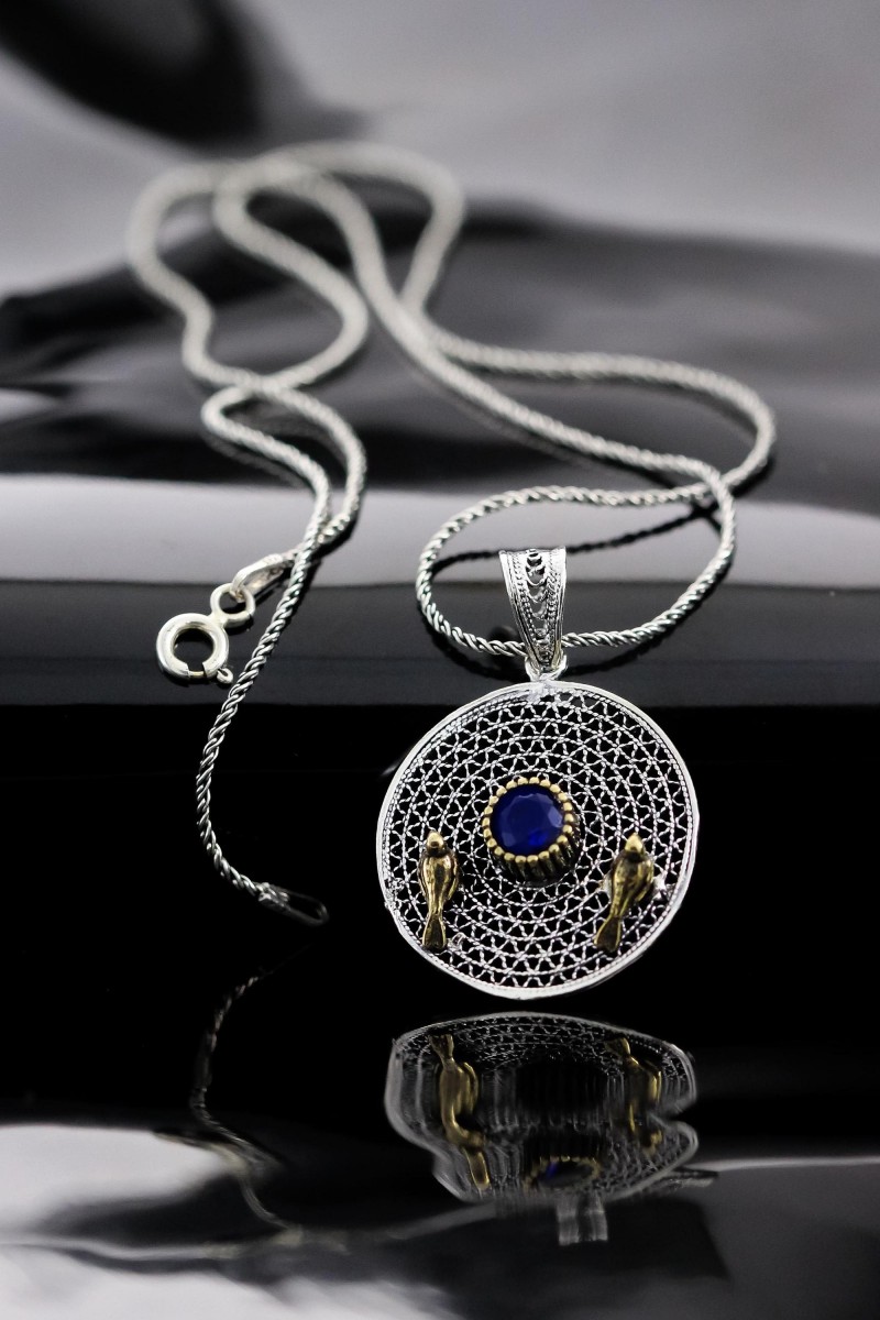 Güvercin Motifli Yuvarlak 925 Ayar Telkari Gümüş Kolye Ucu - SG20230930