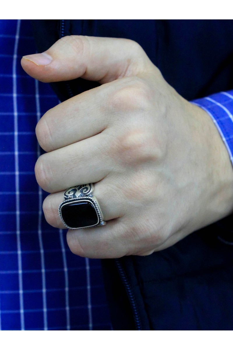 Hayalet Model Oniks Taşlı Erkek Gümüş Yüzük - SG20230806