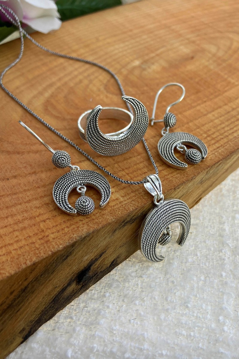 Ürün Hakkında : Hilal Tasarım Hasır Model 925 Ayar Telkari Oksitli ÜçlüSet