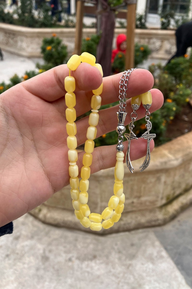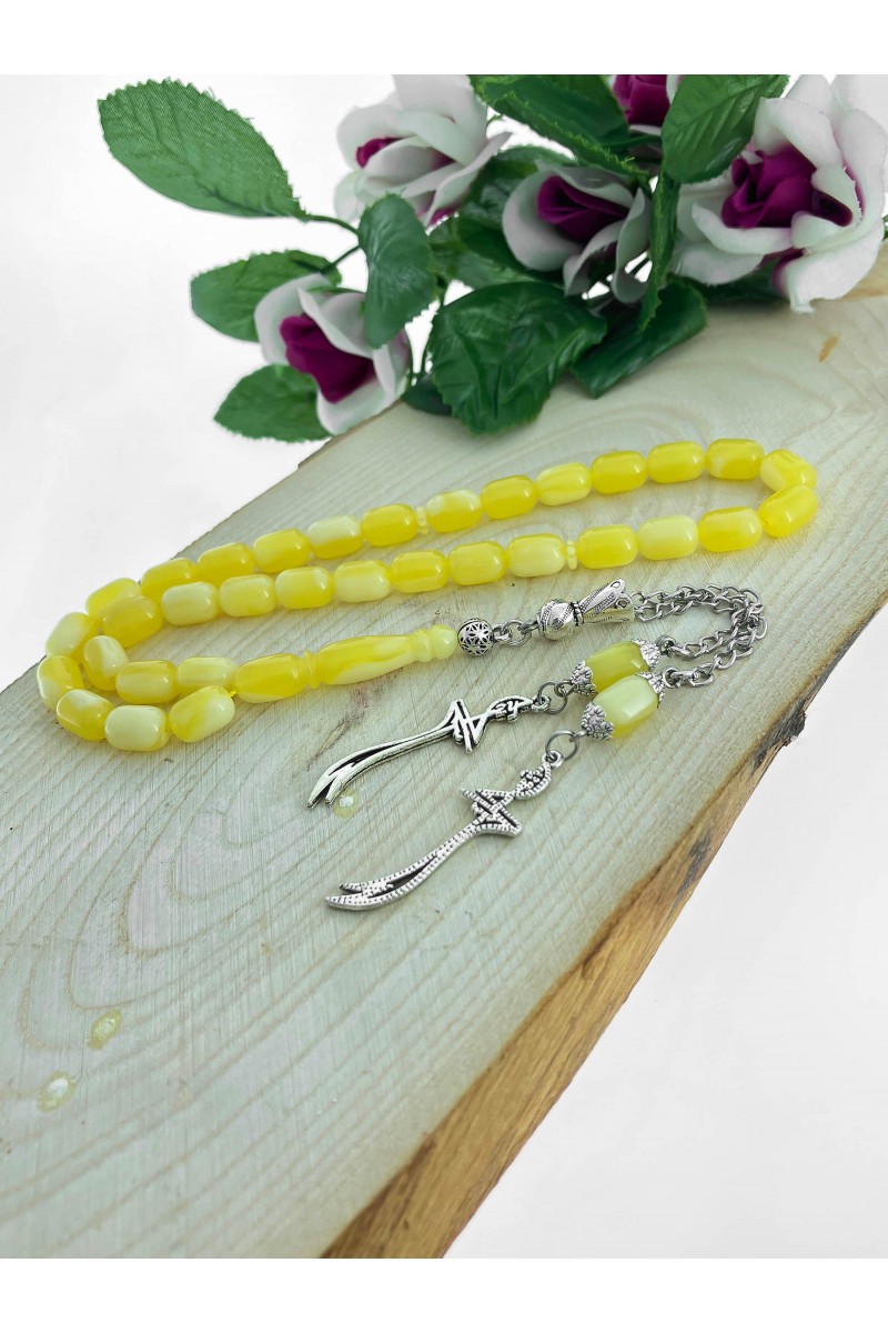 Ürün Hakkında : Hz Ali Zülfikar Püsküllü Beyrut Damlası Press Kehribar Tesbih.
