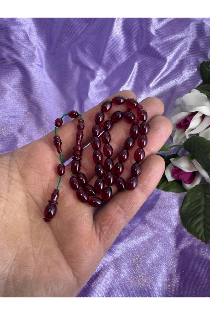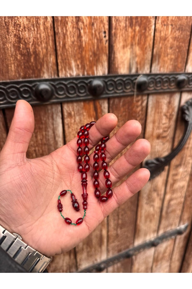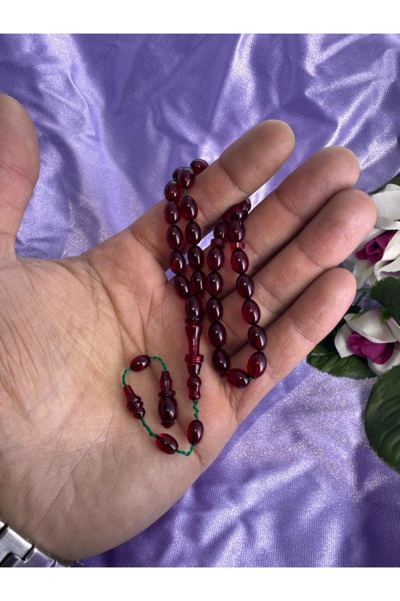 immame halkalı şeffaf kırmızıbilek boy ateş kehribar tesbih - SG20231623