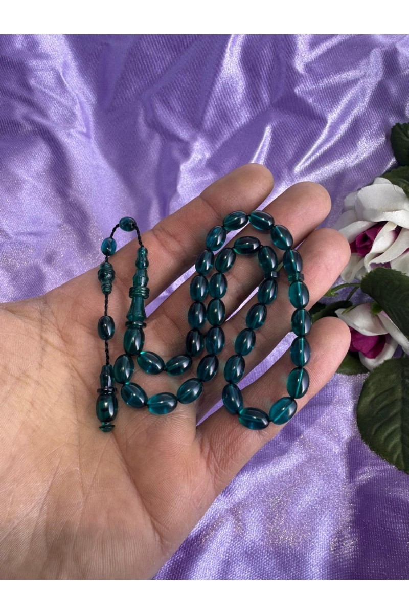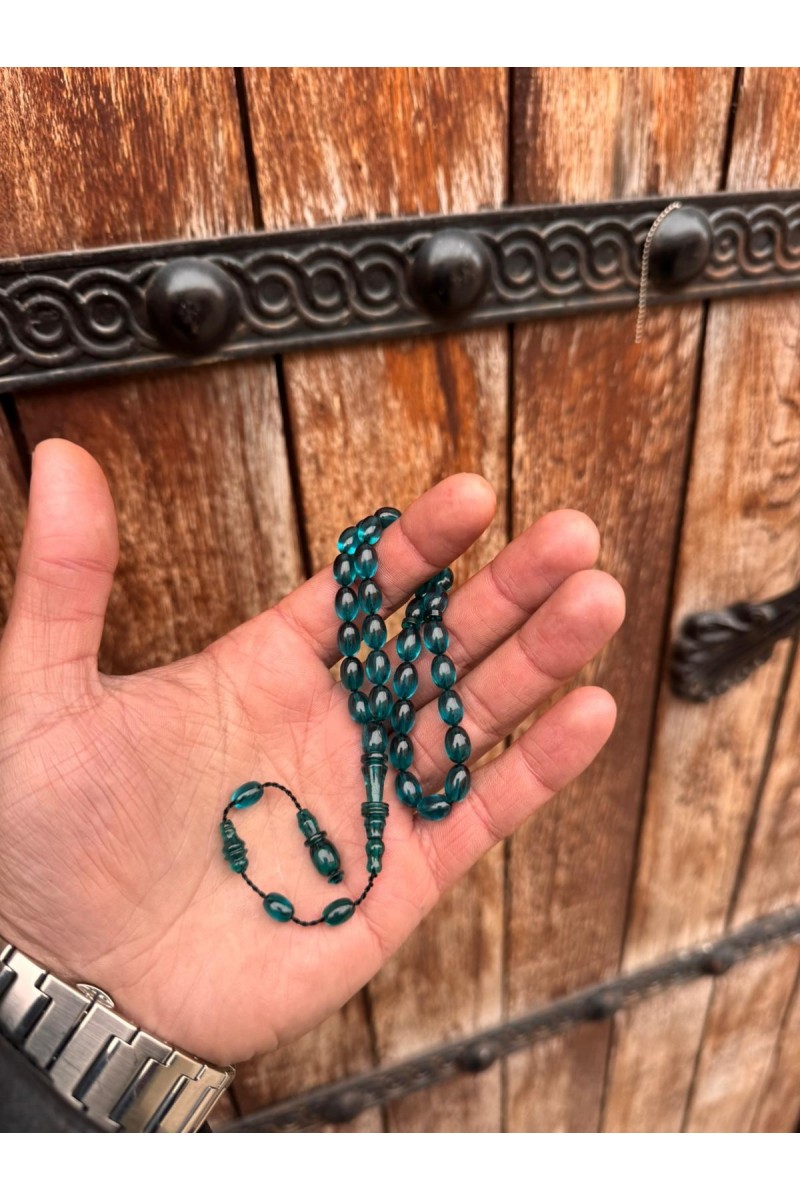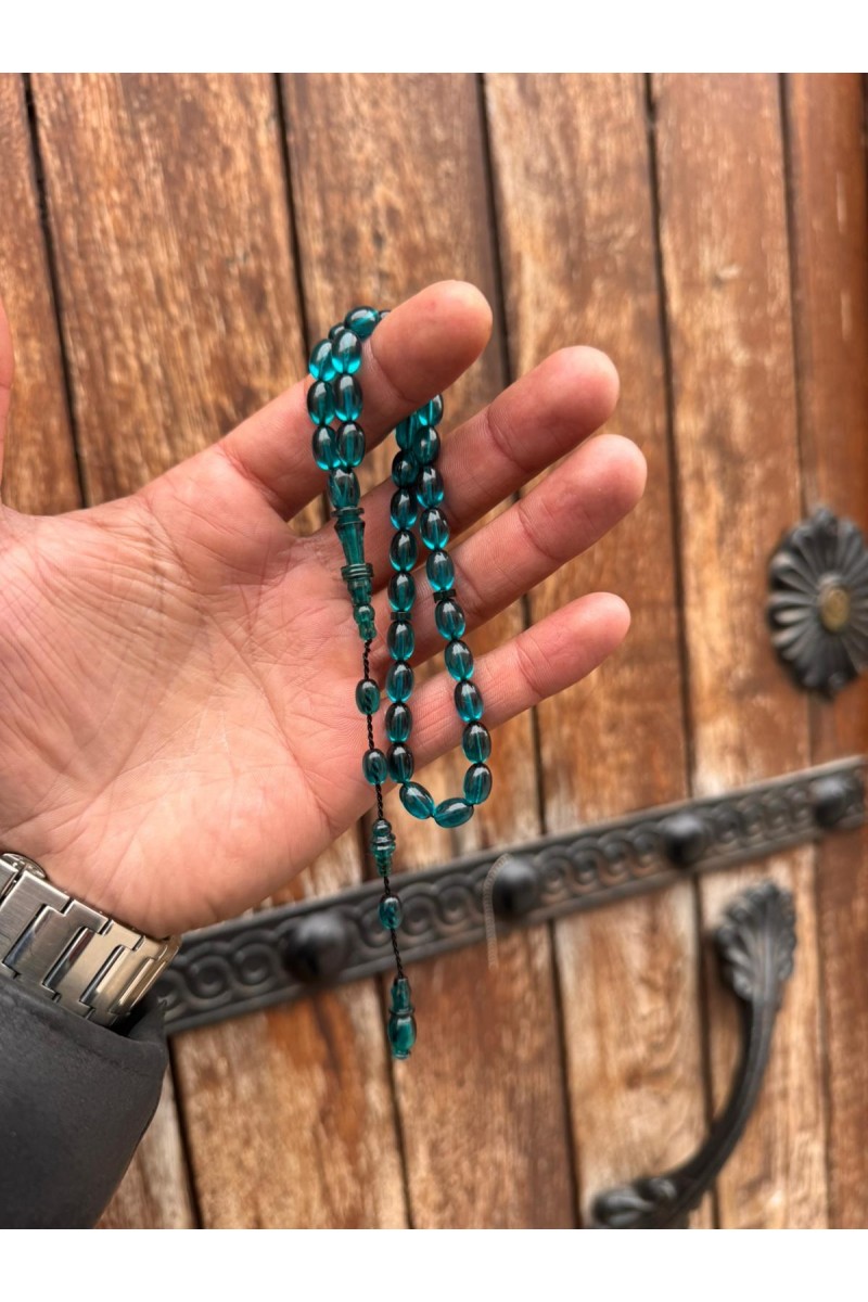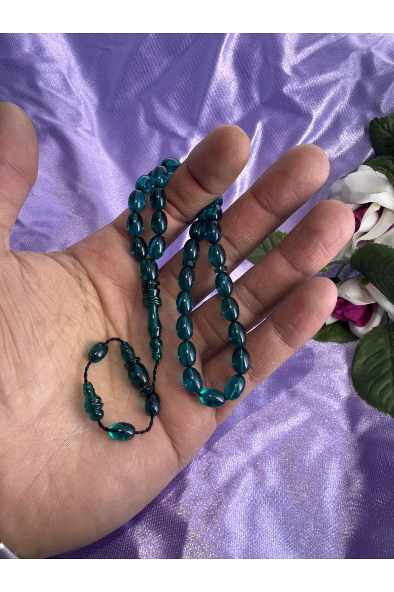 immame halkalı şeffaf turkuaz bilek boy ateş kehribar tesbih - SG20231622