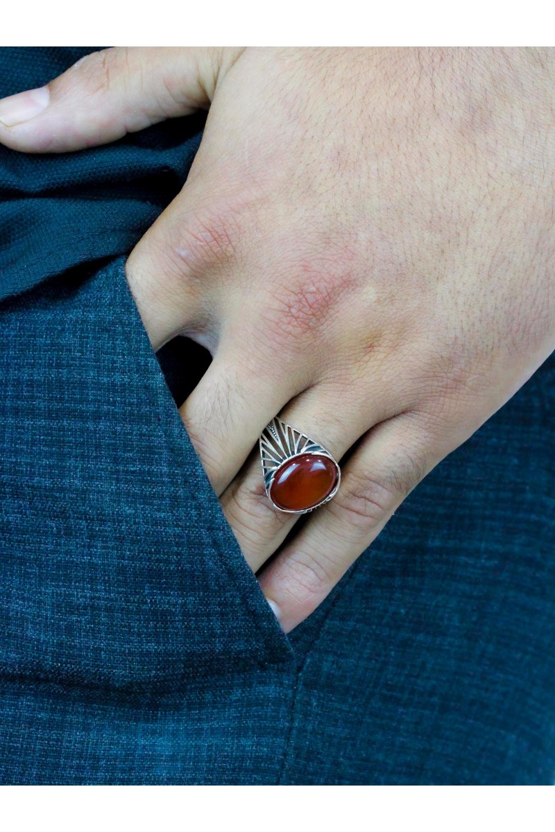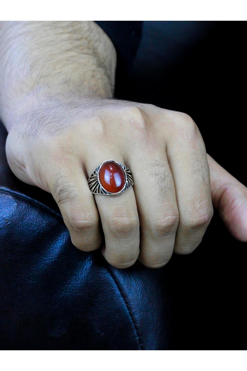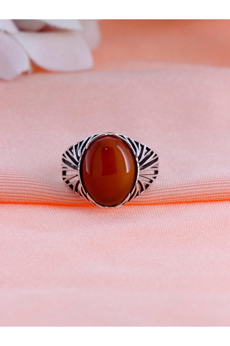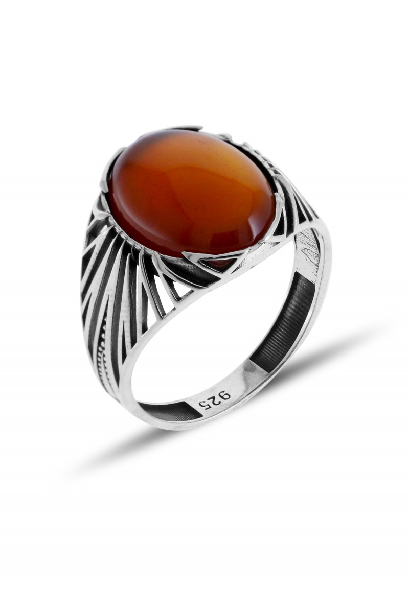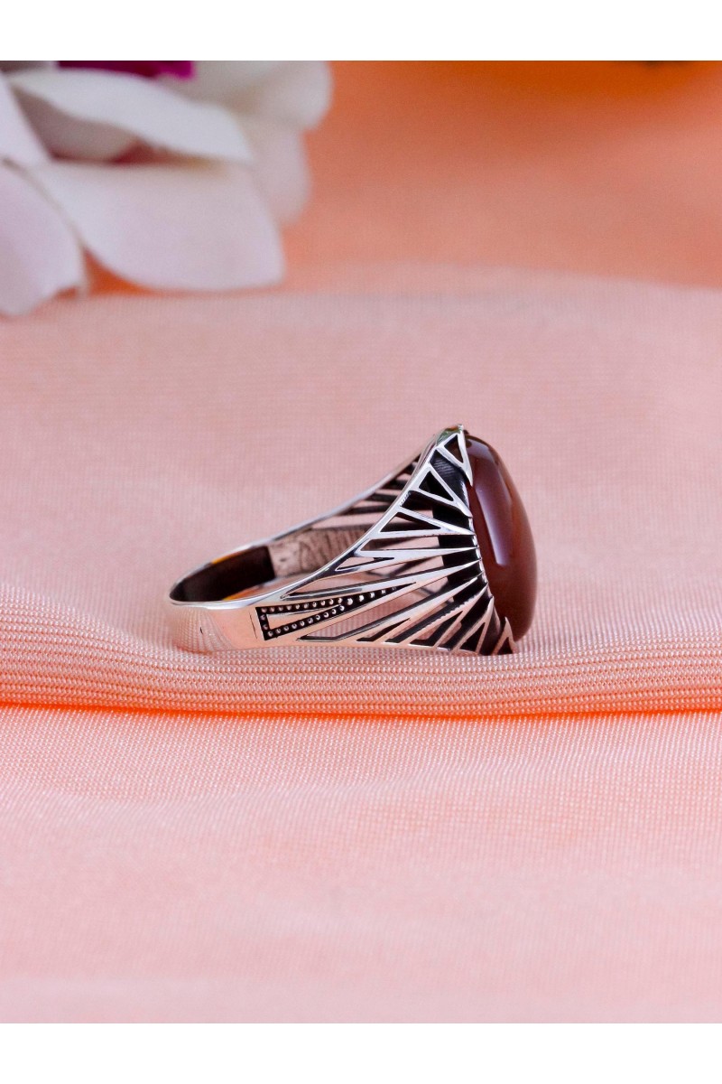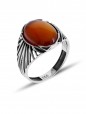 Kafes Tasarım Akik Taşlı 925 Ayar Erkek Gümüş Yüzük - SG20230767