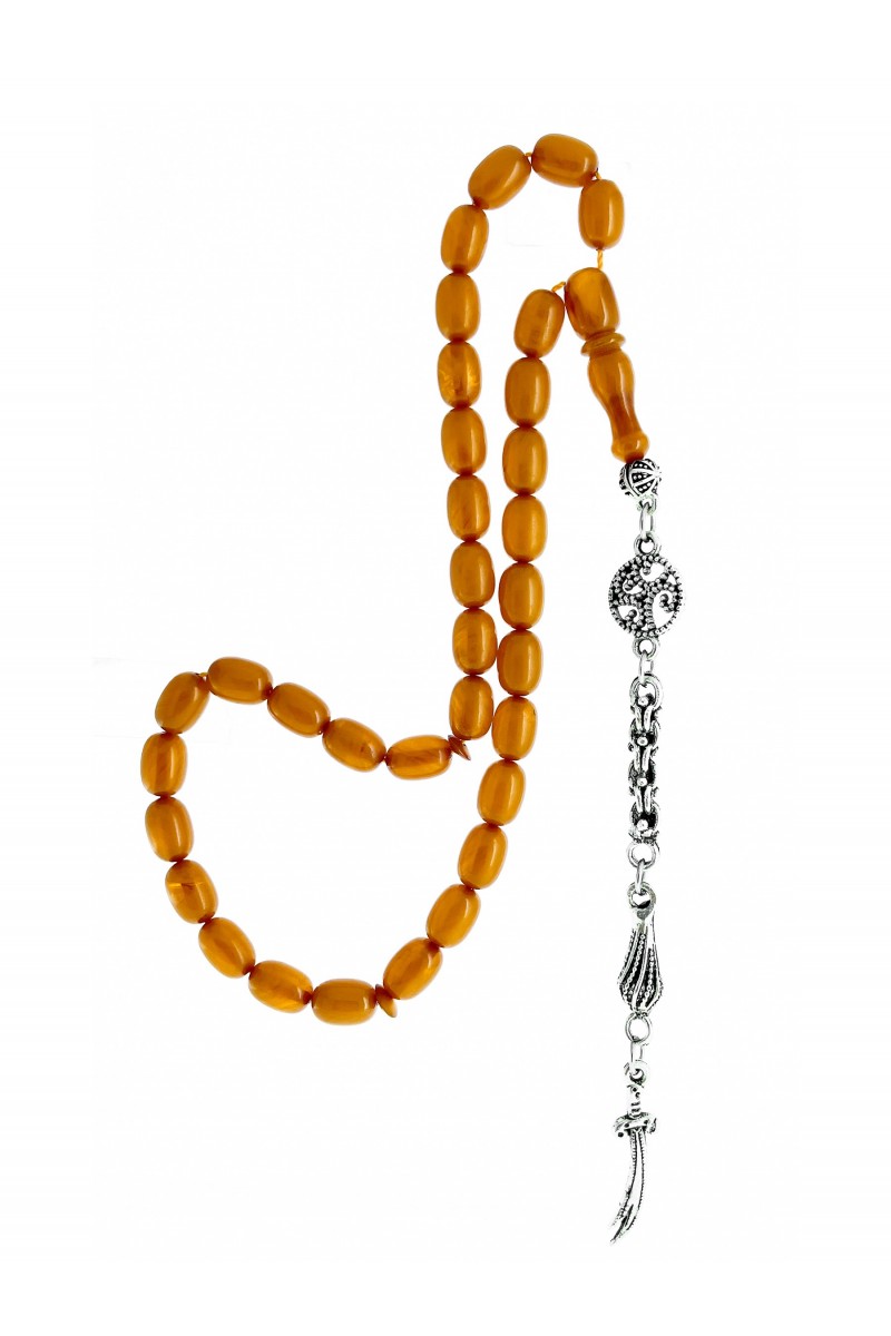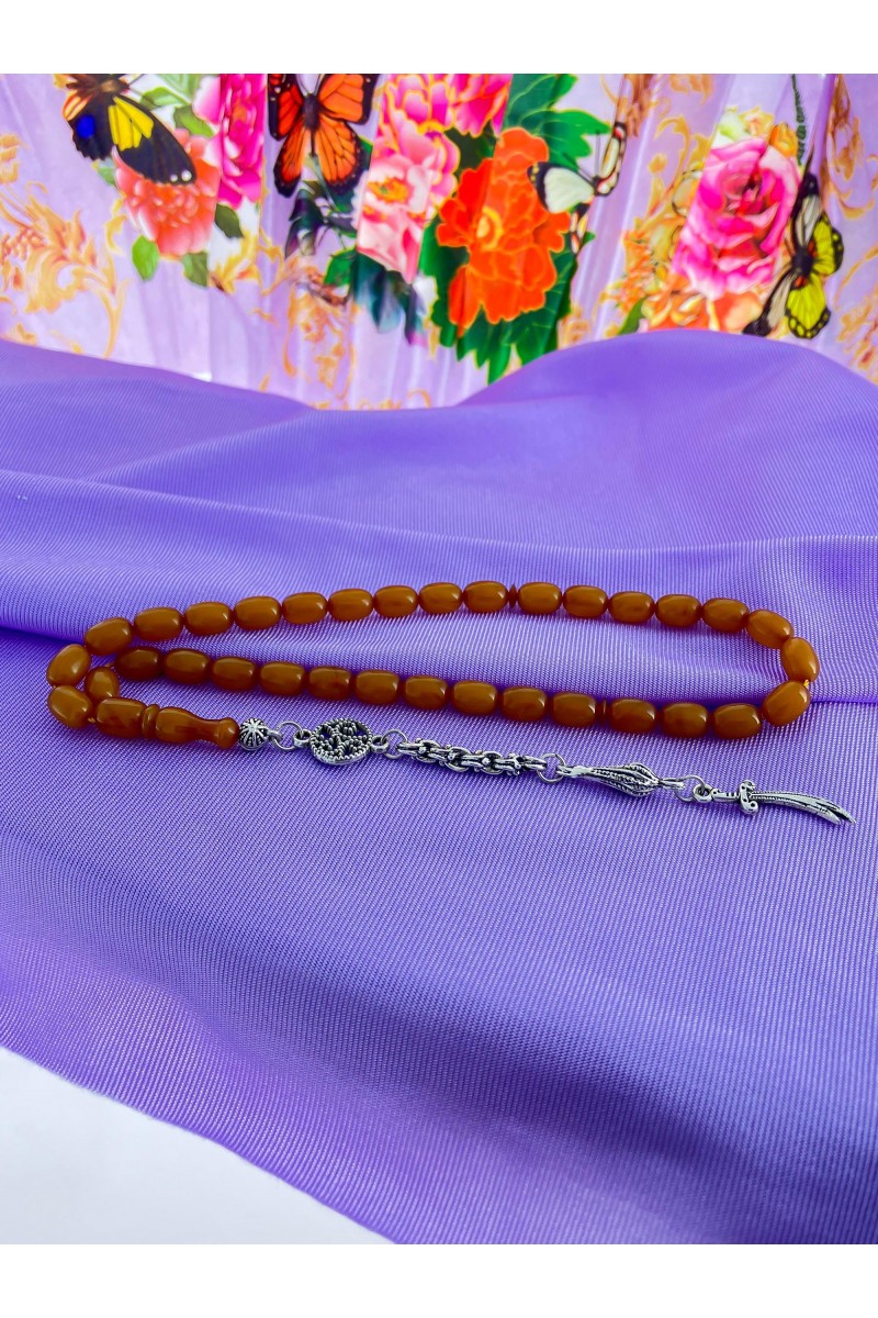 Kahverengi Hareli Kapsül Kesim Sıkma Kehribar Tesbih - SG20230604