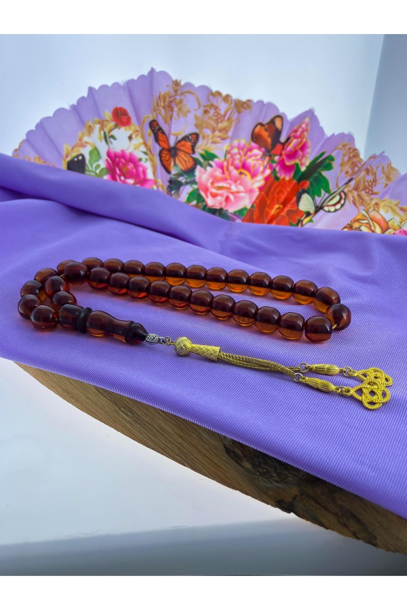 Kahverengi Renk Kesim Ateş Kehribar Tesbih - SG20230632